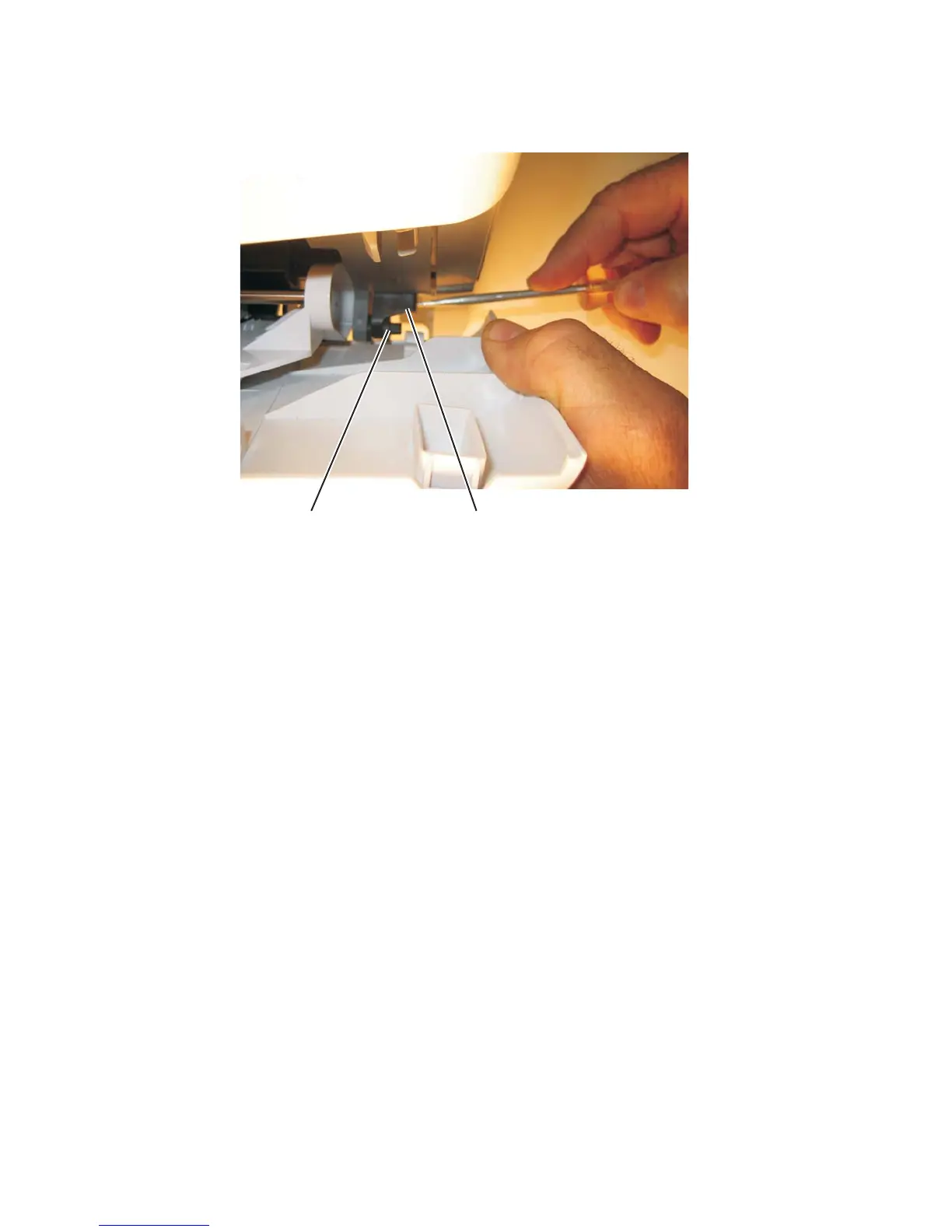 Installation note: Use a flathead screw driver to press in on the door mount (B) while pulling on the front access