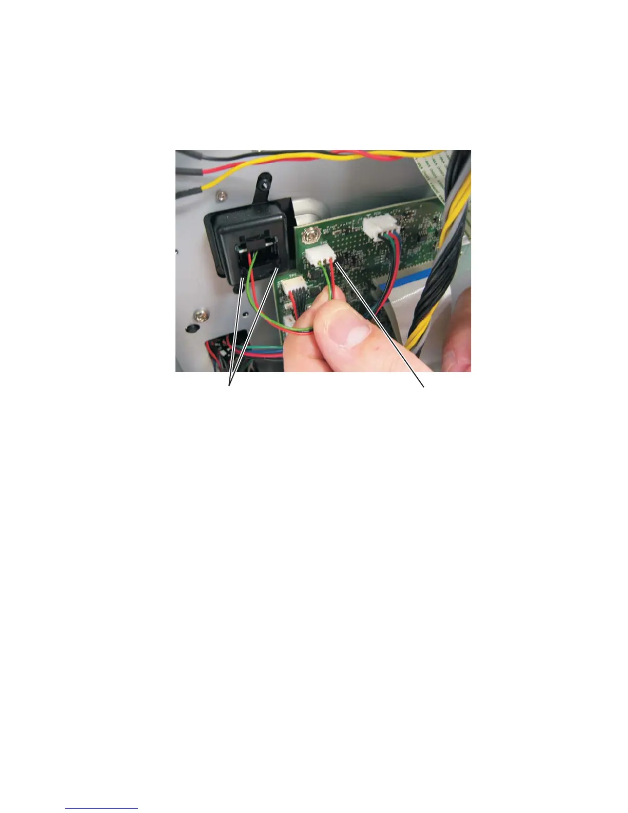 3. Disconnect the toner level sensor cable (A) from the engine board.