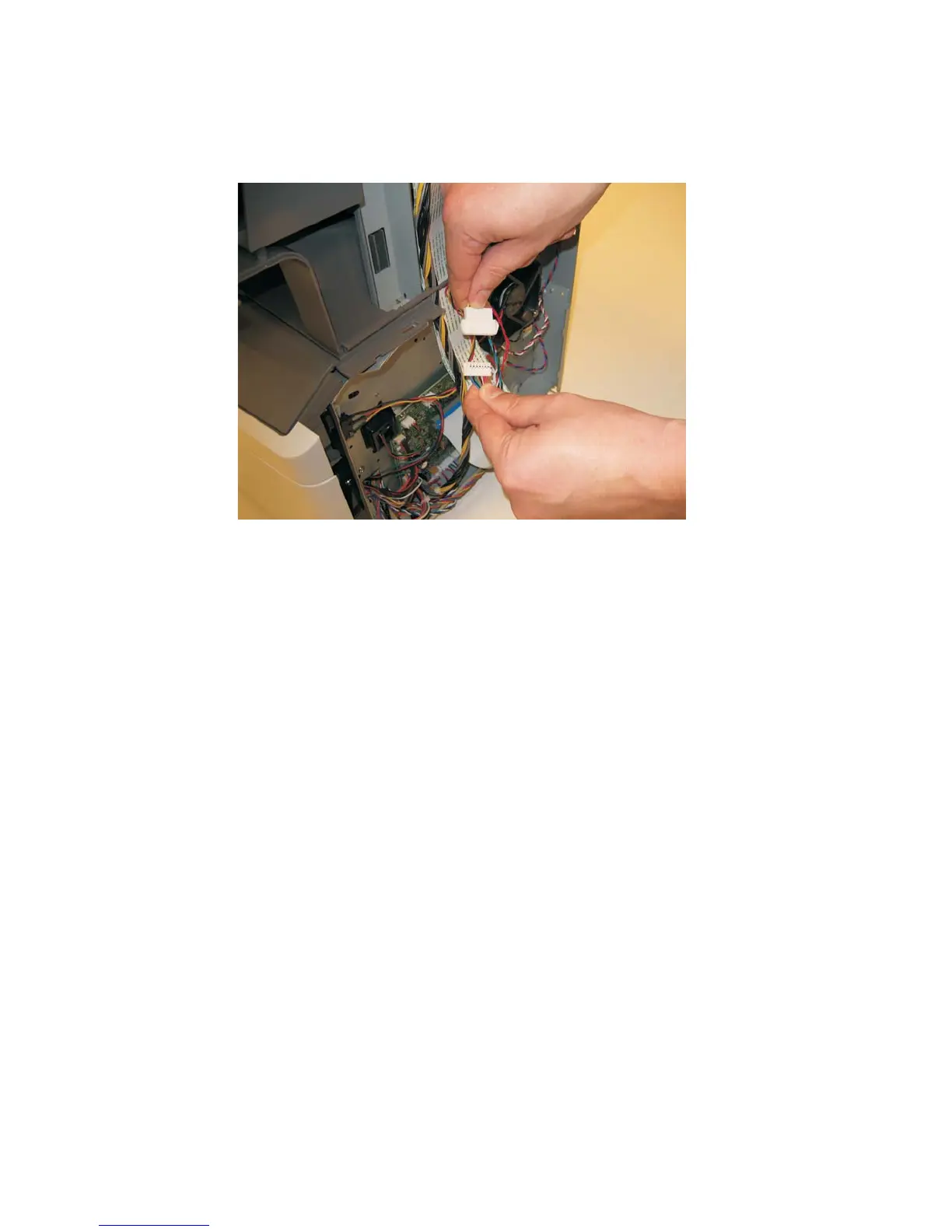 12. Disconnect LSU HSYNC extension cable at the connector in the middle of the cable.