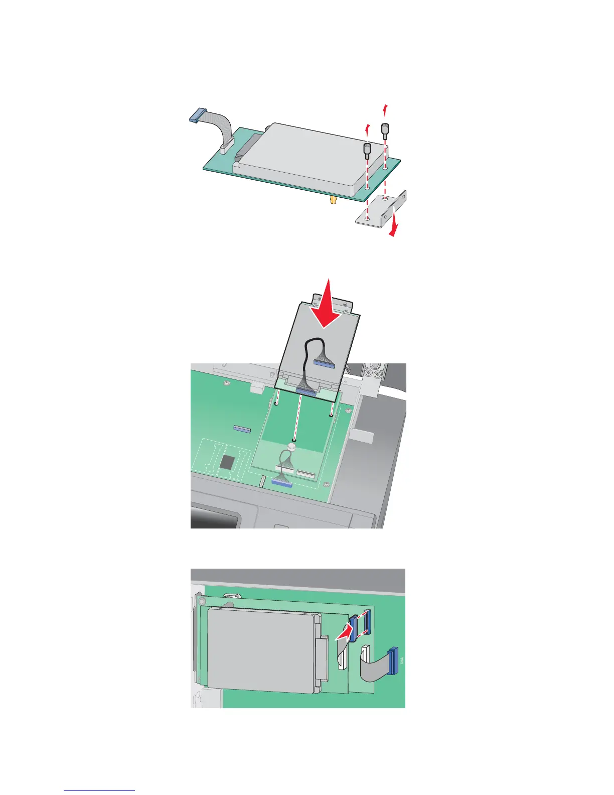 5. Place the hard disk on top of the ISP, making sure the standoff on the hard drive line up with the holes on