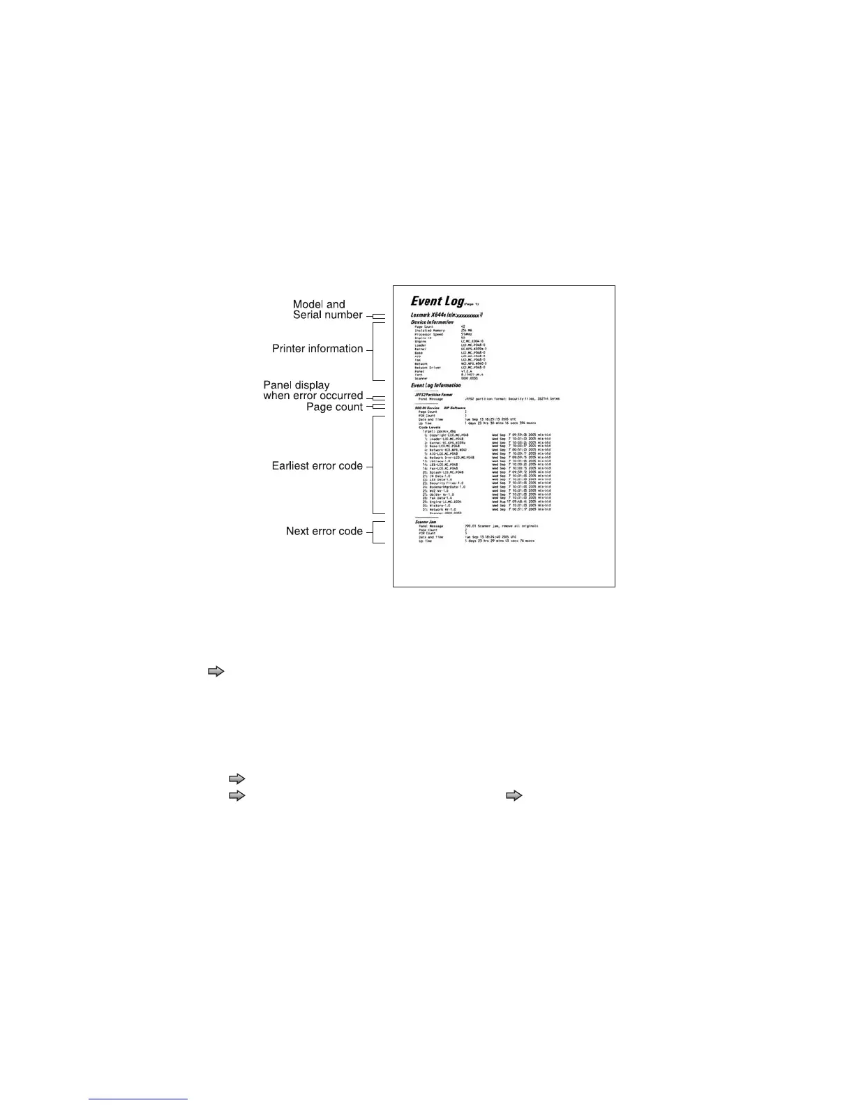 The printed event log can be faxed to Lexmark or your next level of support for verification or diagnosis.