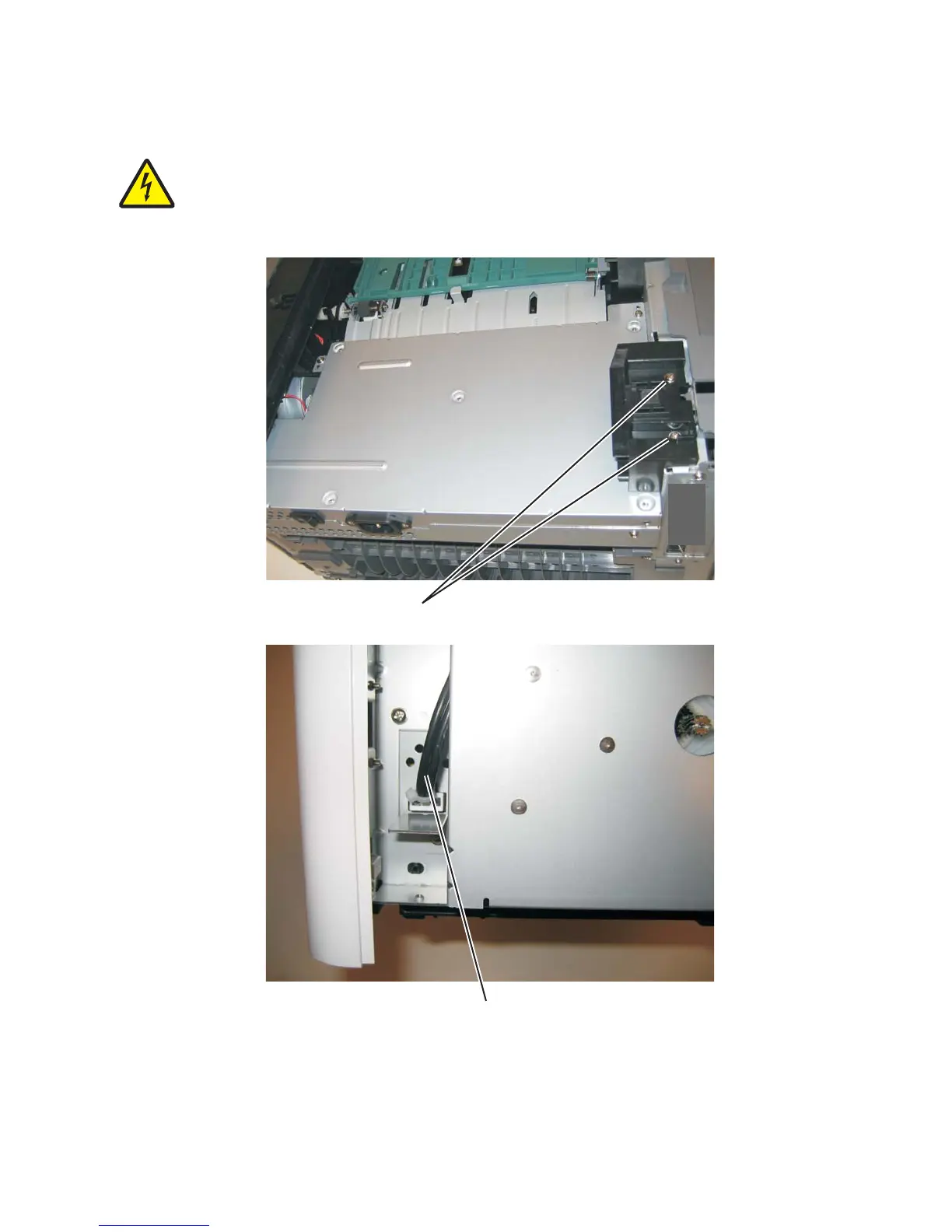 5. Disconnect the fuser power cable (B).