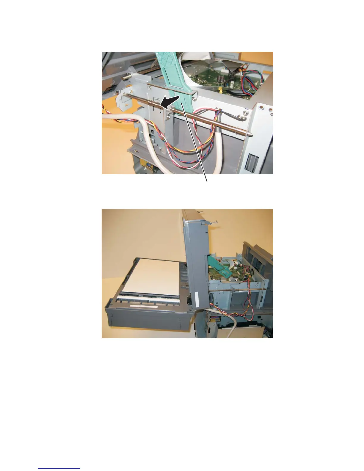 Warning: To avoid damage to the rear frame assemblies, hold the ADF while raising the flatbed to the