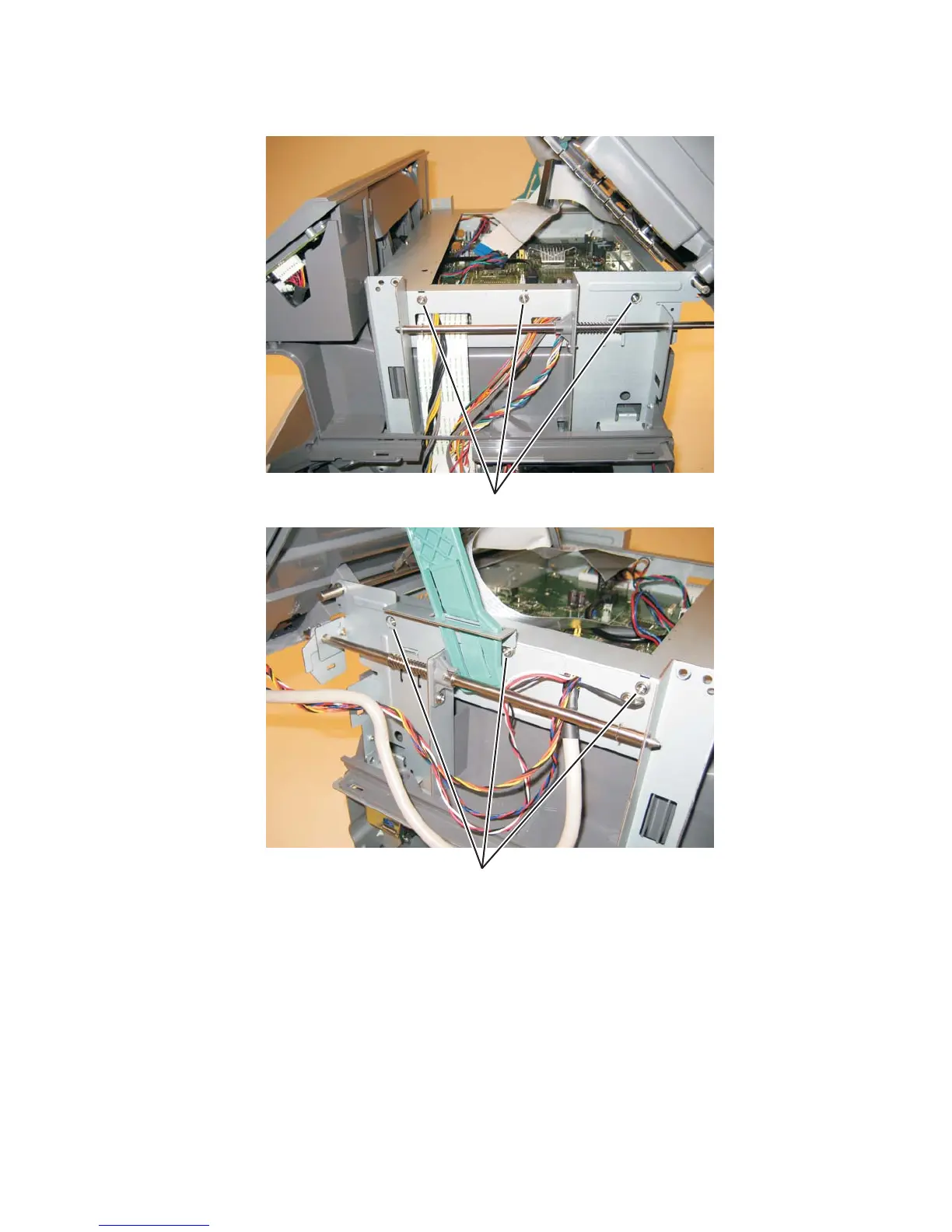 3. Loosen the three screws (C) on each side of the controller board cage.