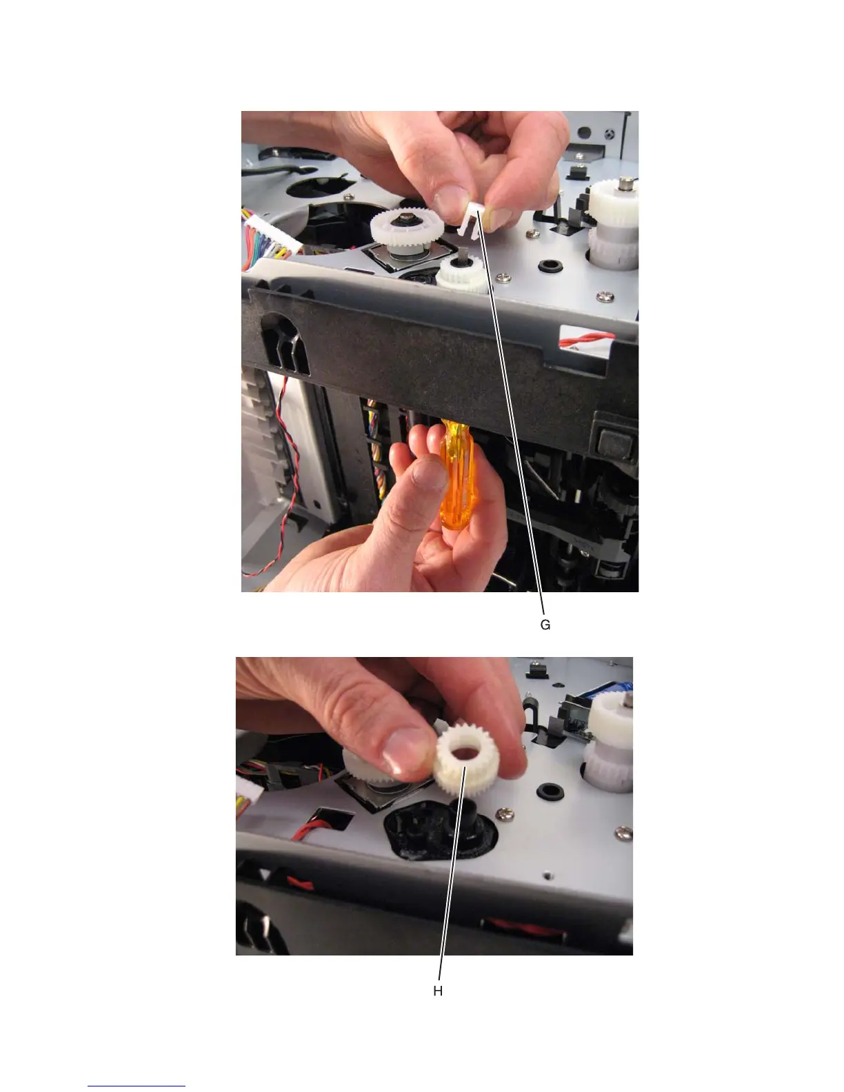 8. Use a screwdriver to pop the retainer clip (G) loose from the gear.