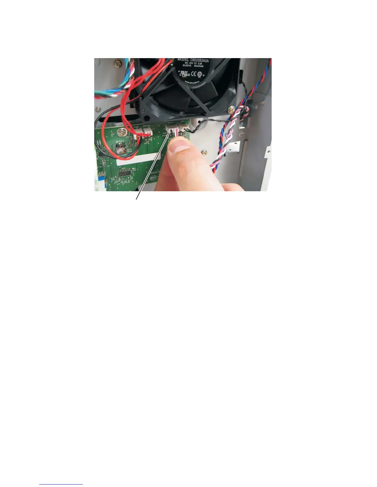 7. Disconnect the exit sensor cable (E) from the engine board.