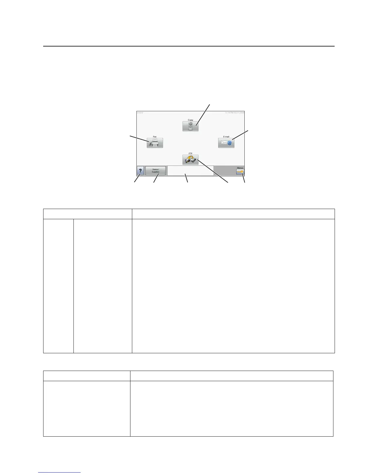 which is referred to as the home screen. Use the home screen buttons to initiate an action such as copying,
