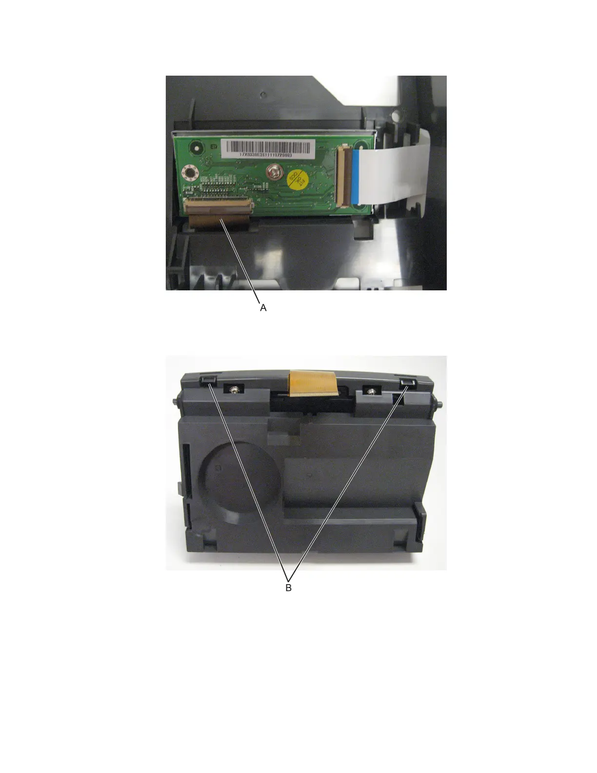 3 Disconnect the display cable (A) from the interface card.