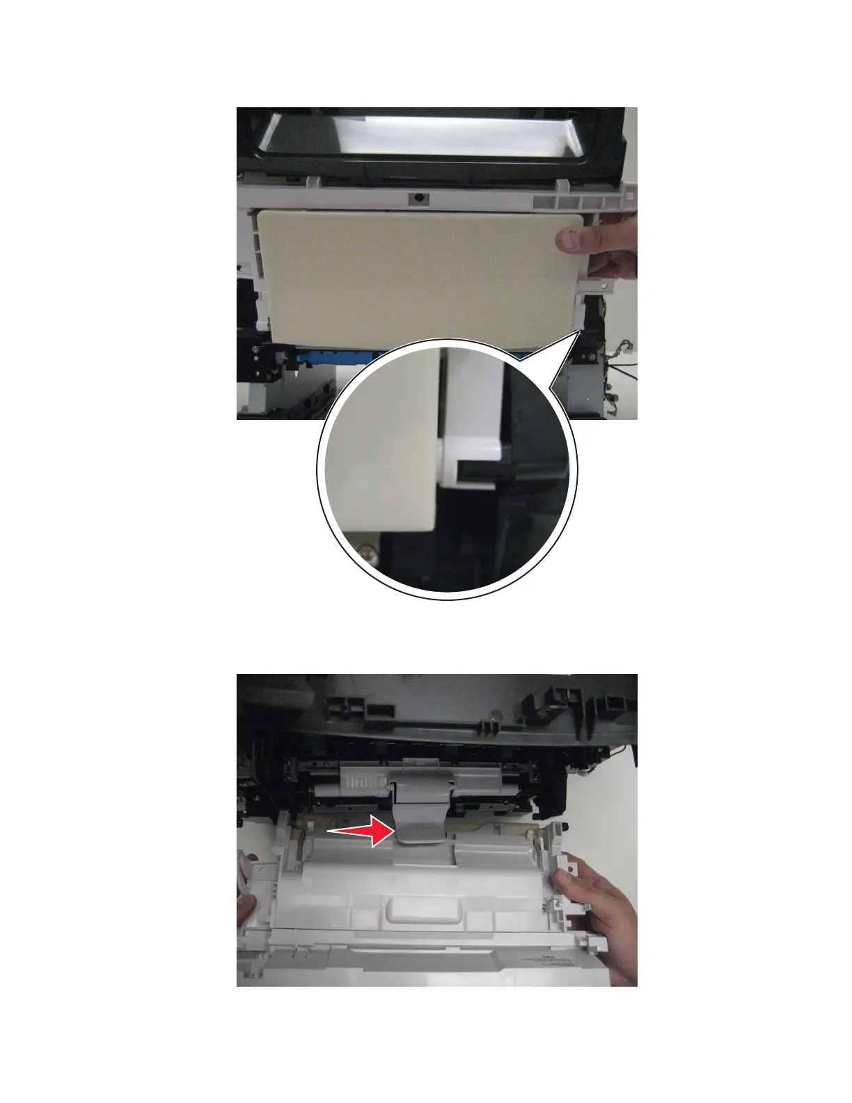 4 Release the right hinge o the pivot by lifting up on the right side of the front access cover.