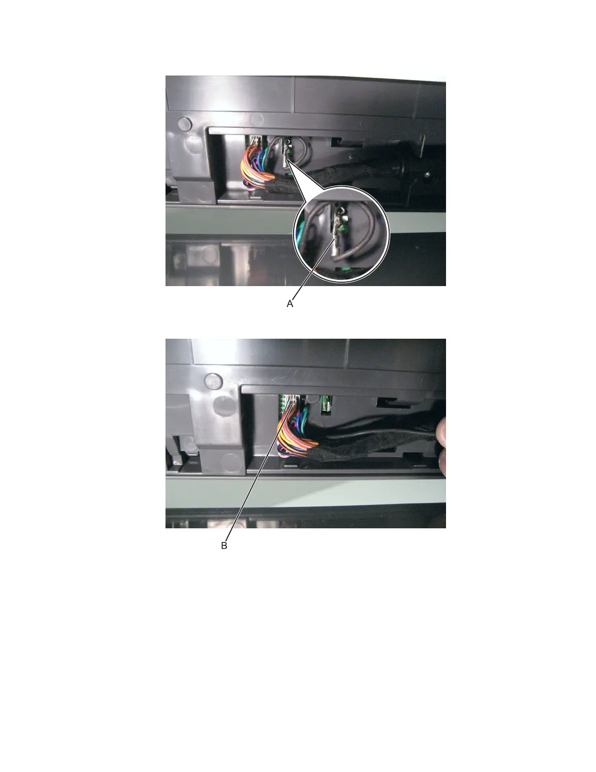 4 Disconnect the ADF cable (B) from the ADF unit.