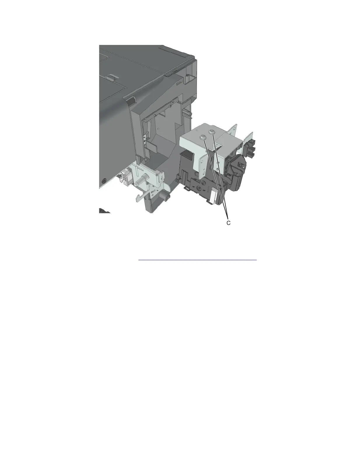 4 Remove the two screws (C), and remove the stapler carriage assembly.