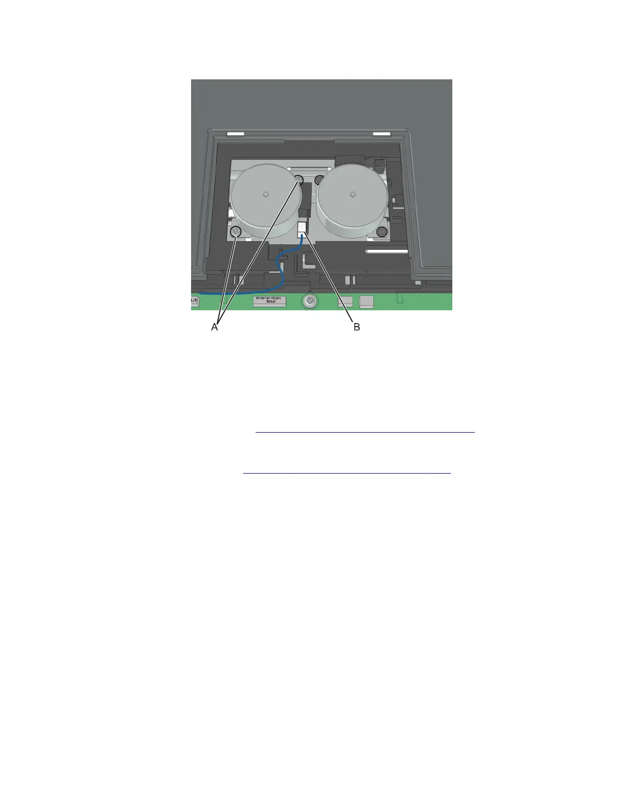 3 Disconnect the motor cable (B), and remove the tamper motor.