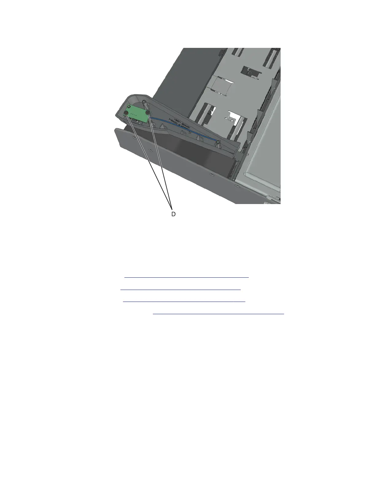4 Remove the stapler service cover. See “Stapler service cover removal” on page 397.
