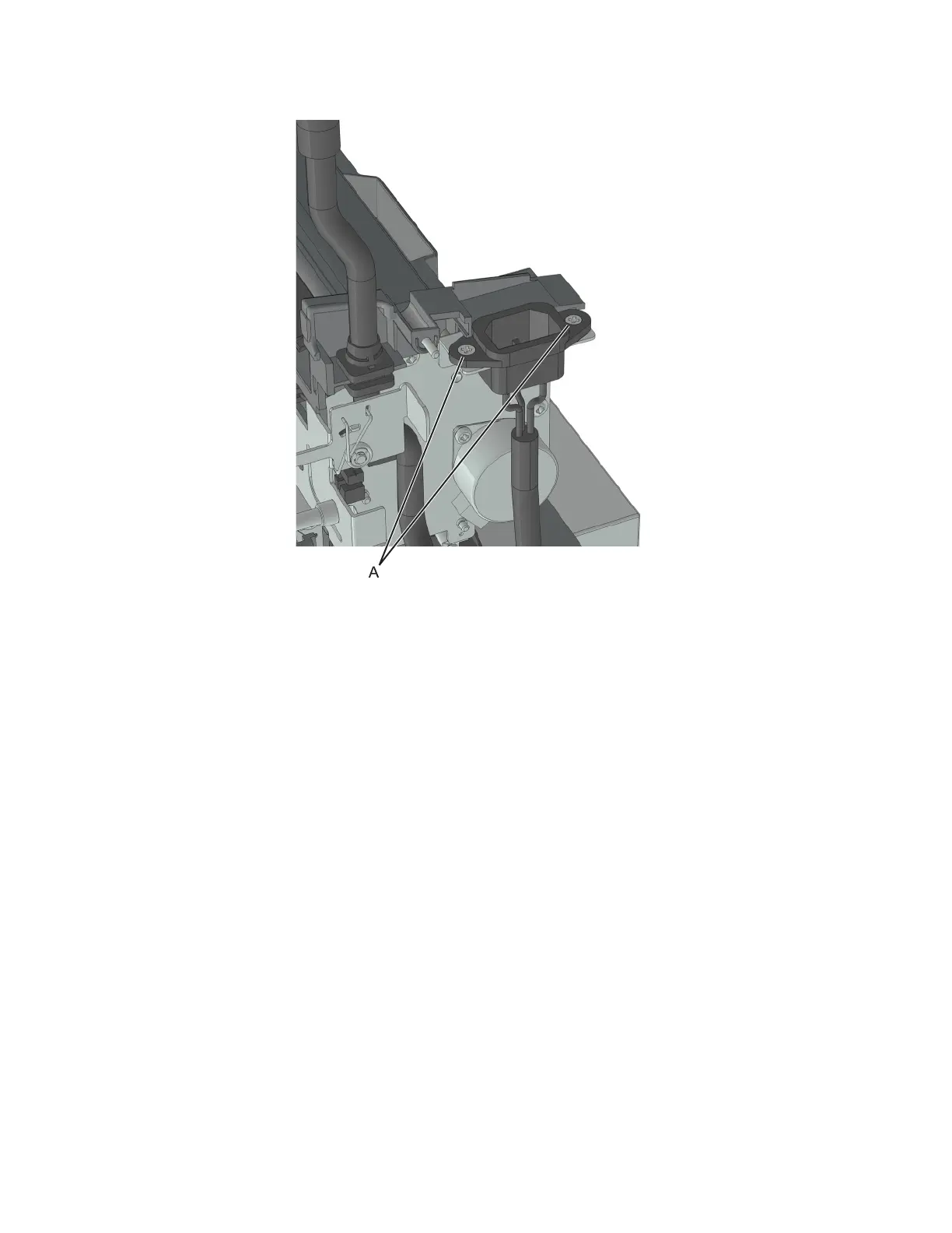 5 Remove the two screws (A), and cut the cable ties securing the power supply cable.