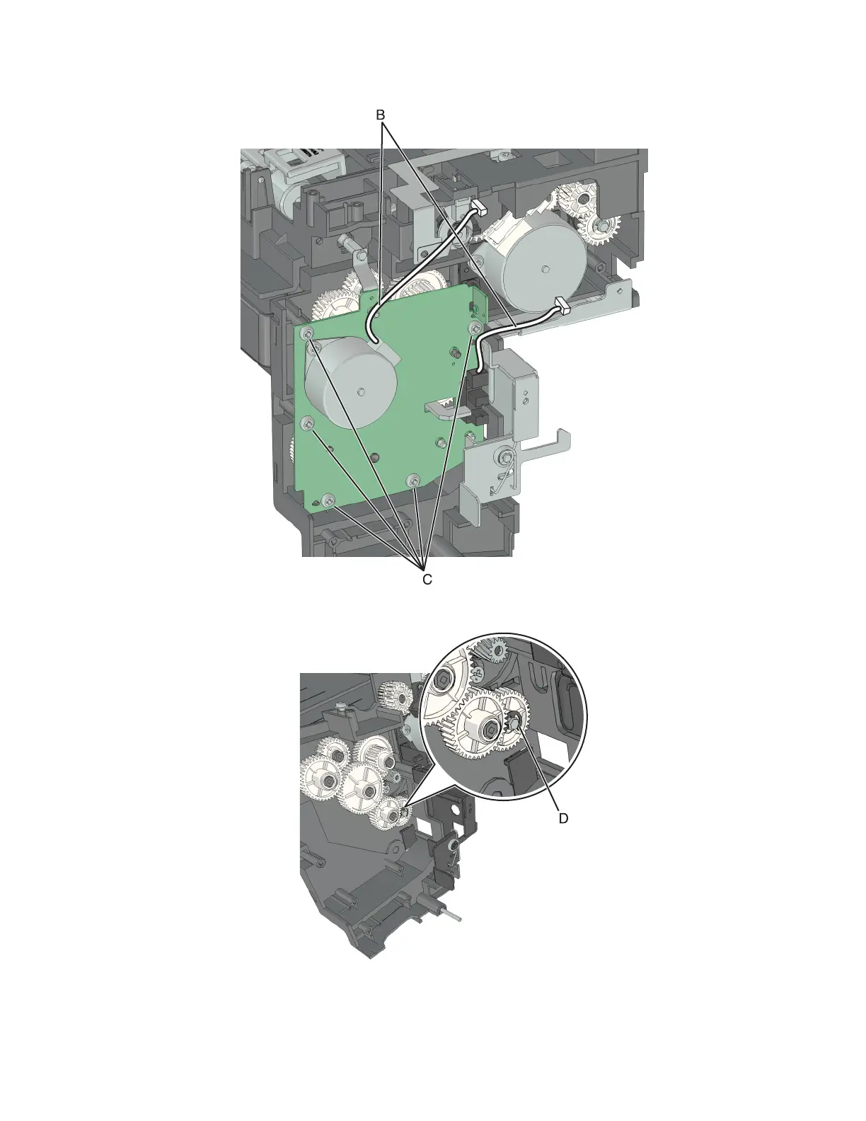 7 Remove the five screws (C) from the diverter motor assembly.