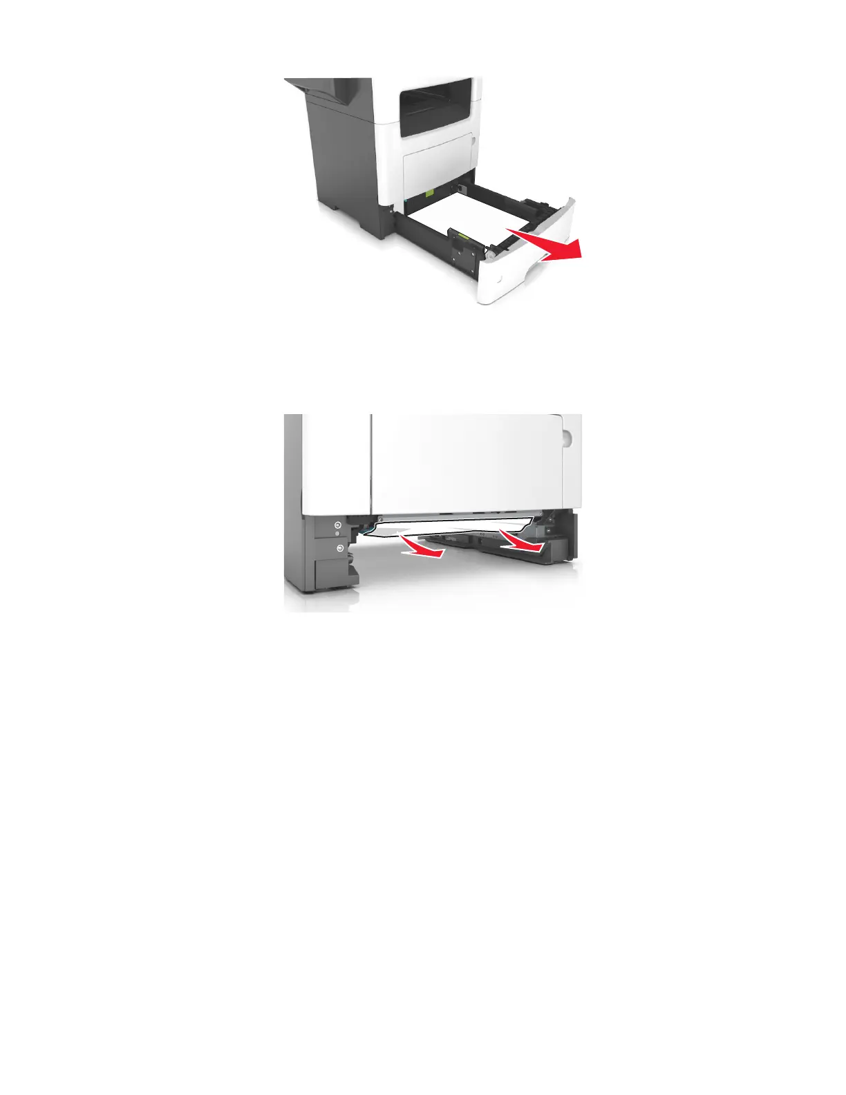 Note: The message on the printer display indicates the tray where the jammed paper is located.