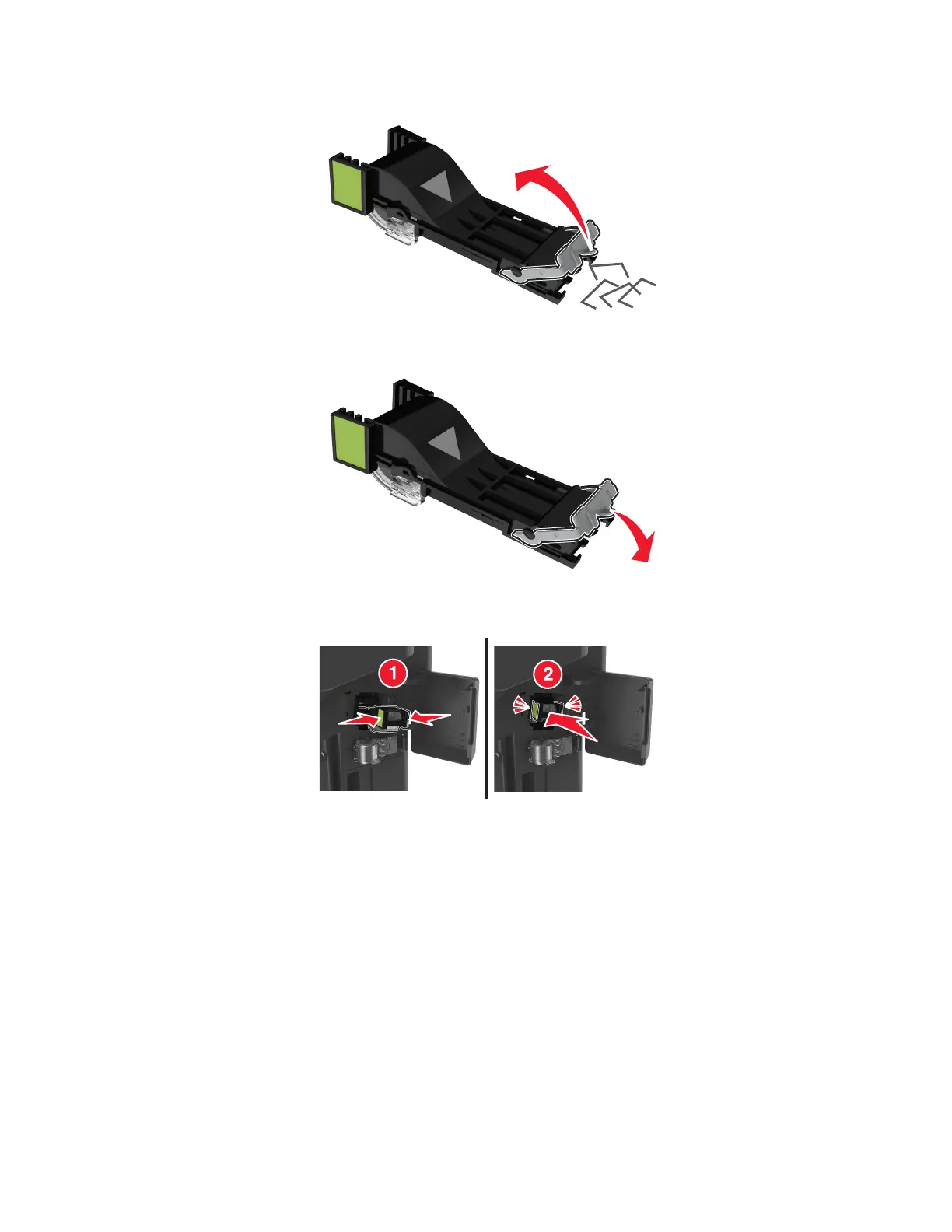 5 Insert stapler cartridge back into the finisher until it clicks into place.