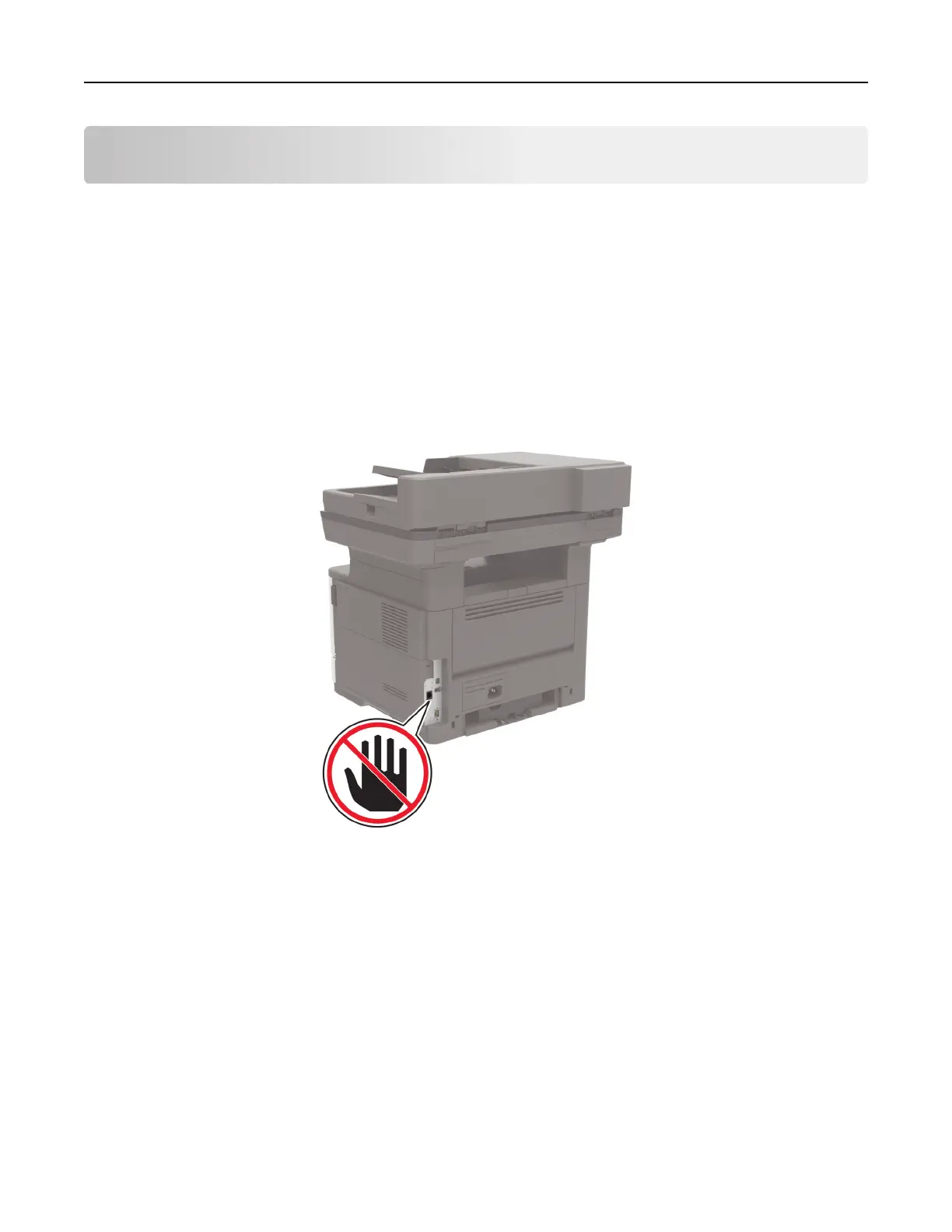 Warning—Potential Damage: To avoid loss of data or printer malfunction, do not touch cables or the printer