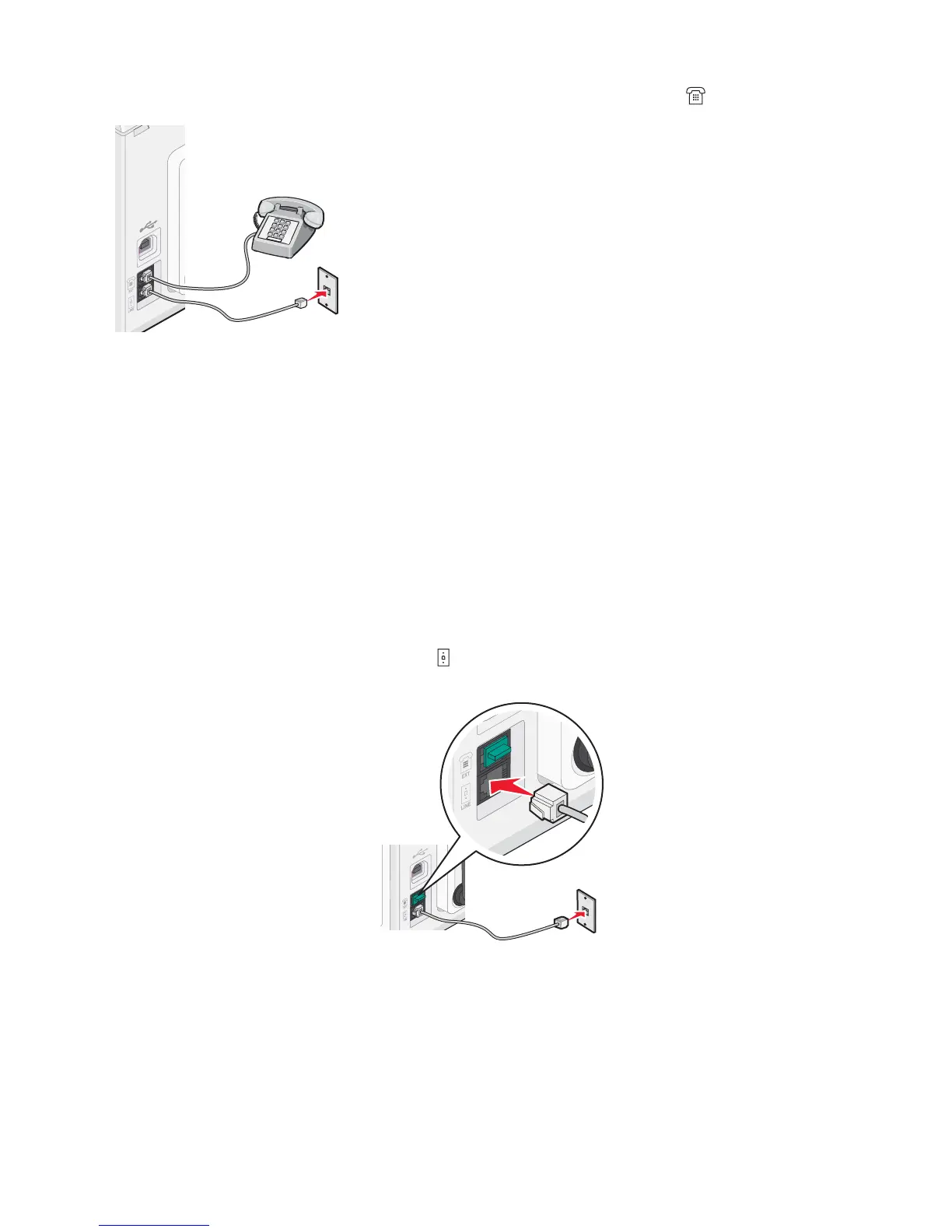 2 Connect one telephone cord into the LINE port of the printer, and then plug it into an active telephone wall