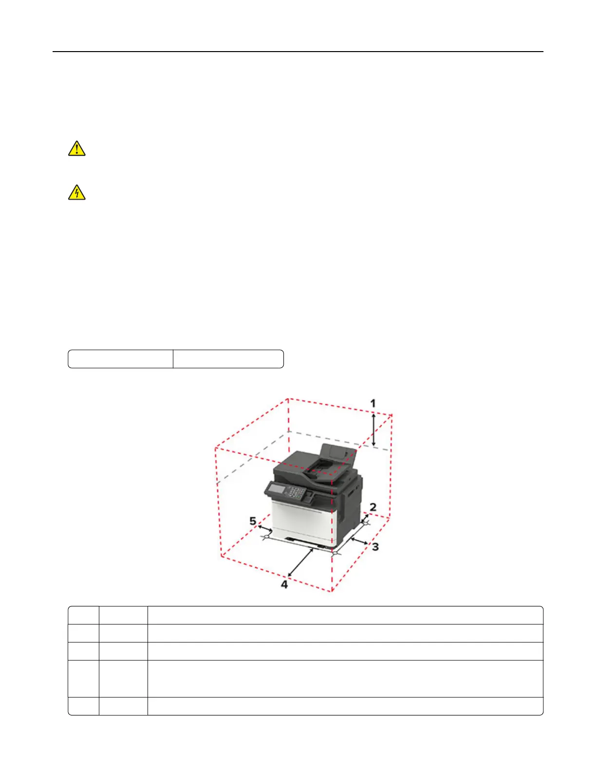 • Allow the following recommended amount of space around the printer for proper ventilation: