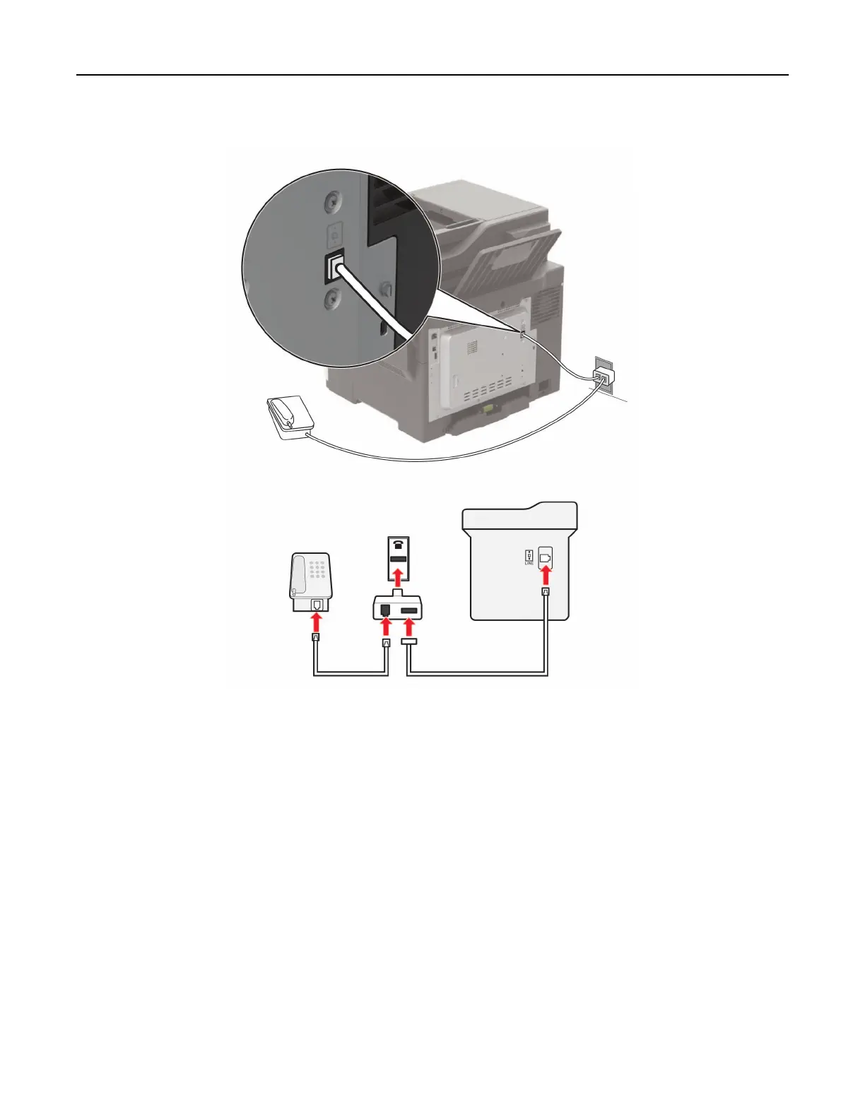 1 Connect one end of the telephone cable to the line port of the printer.