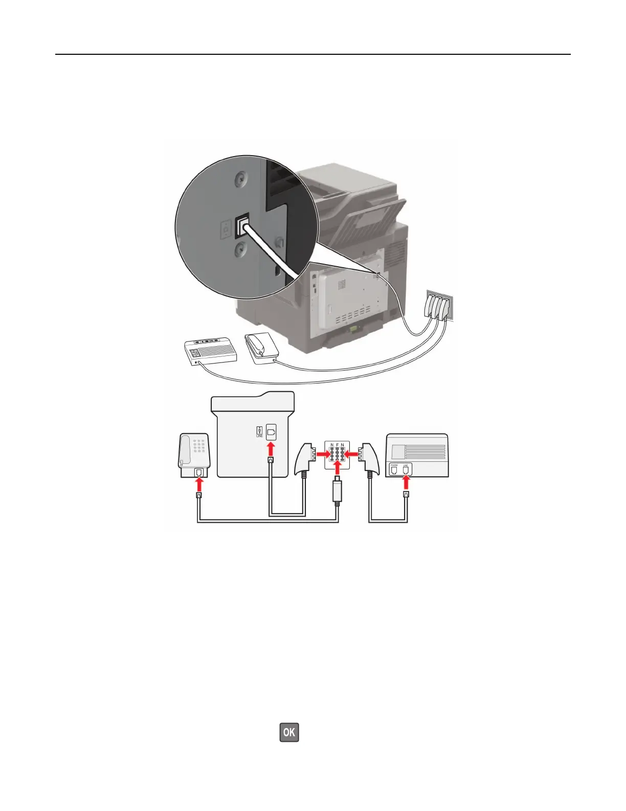 machines. The F port is for telephones. Connect the printer to any of the N ports.
