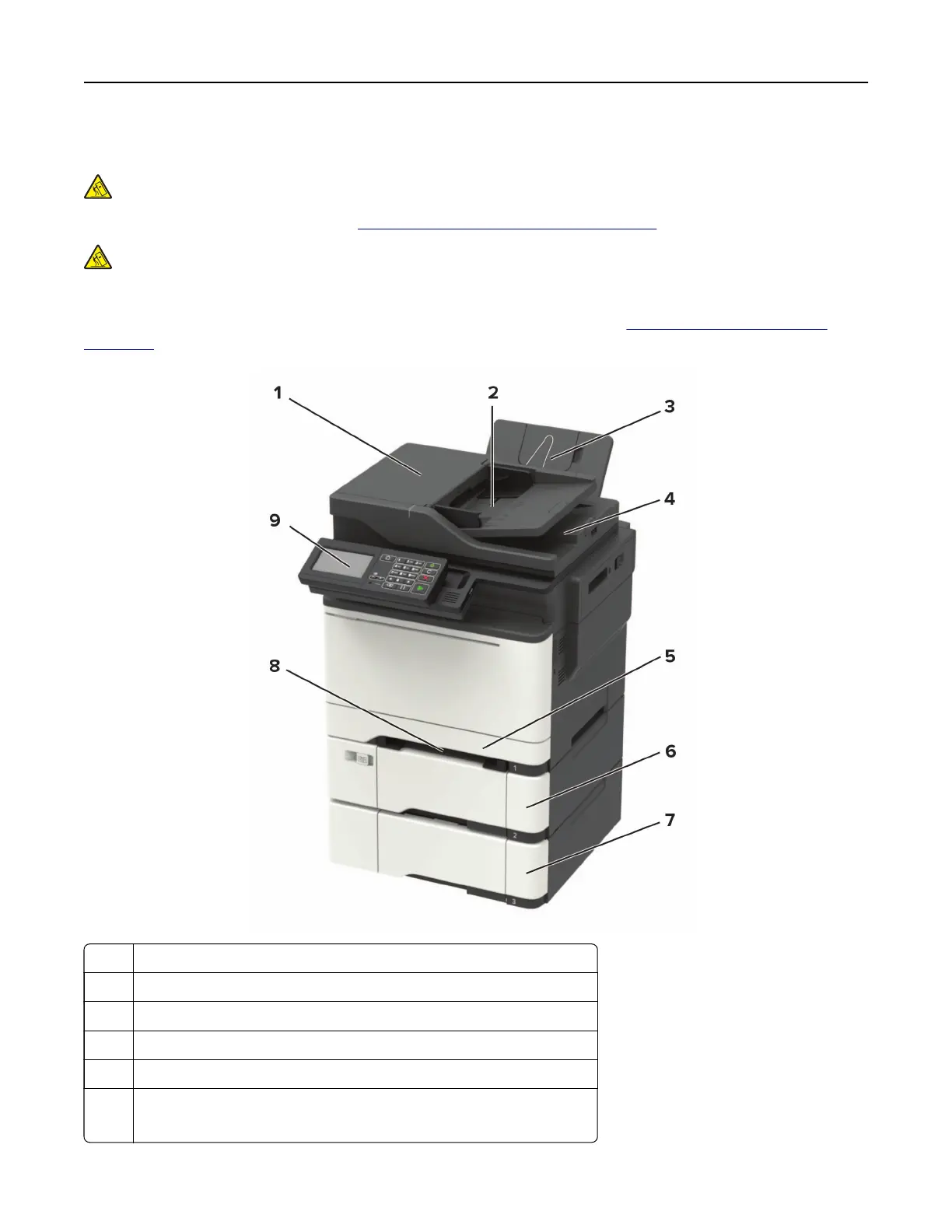 CAUTION—TIPPING HAZARD: Installing one or more options on your printer or MFP may require a