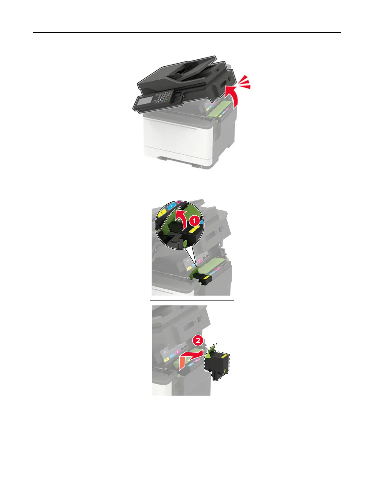 2 Remove the used toner cartridge.