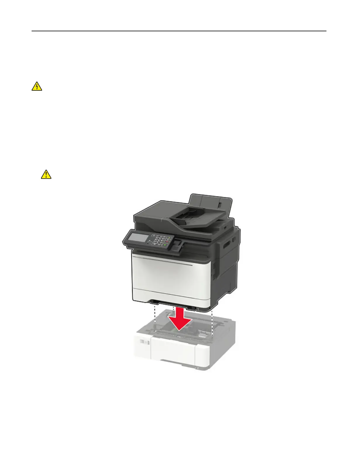 4 Align the printer with the optional tray, and then lower the printer into place.