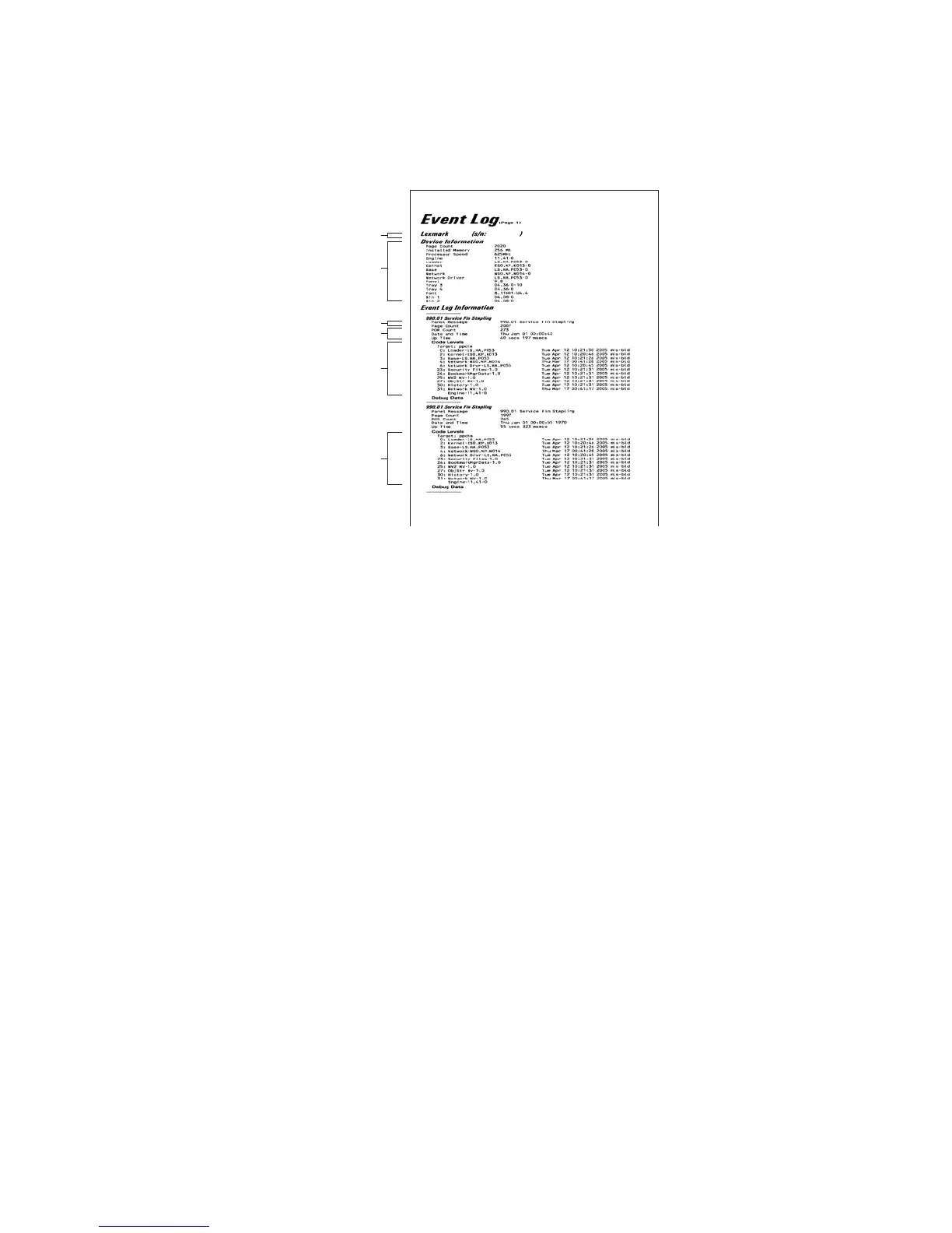 Each page of the printed Event Log report has the title Event Log at the top of each page followed by the model