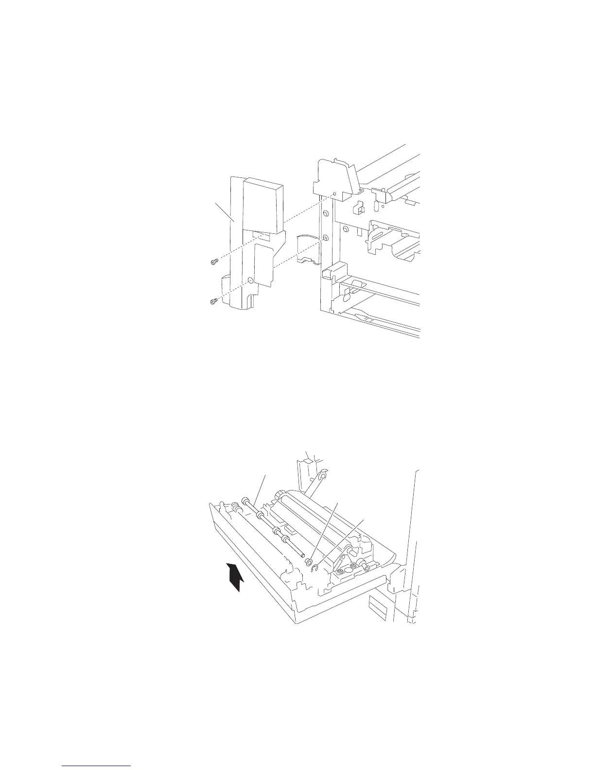2. Remove the E-clip securing the fuser exit roll assembly (A) to the machine.