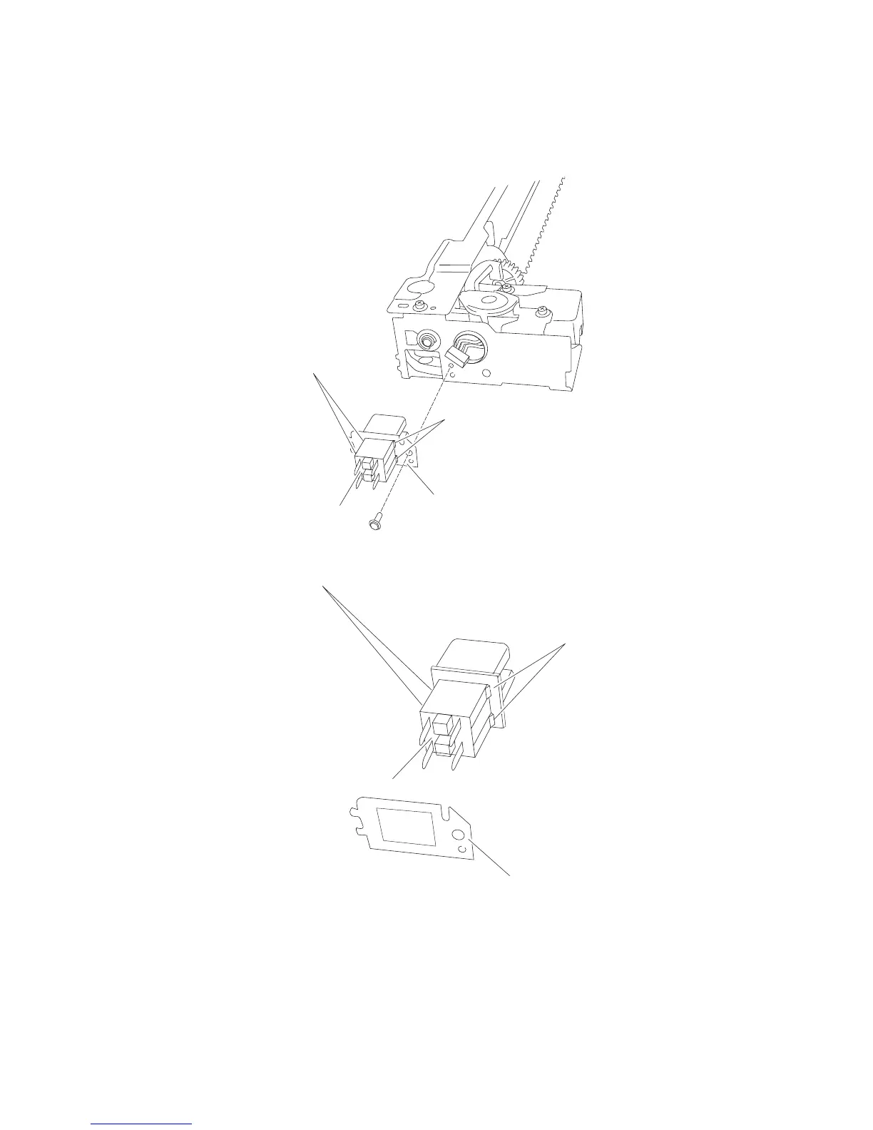 7. Release the hooks securing the switch (printer left door interlock) (B) to the bracket (A).