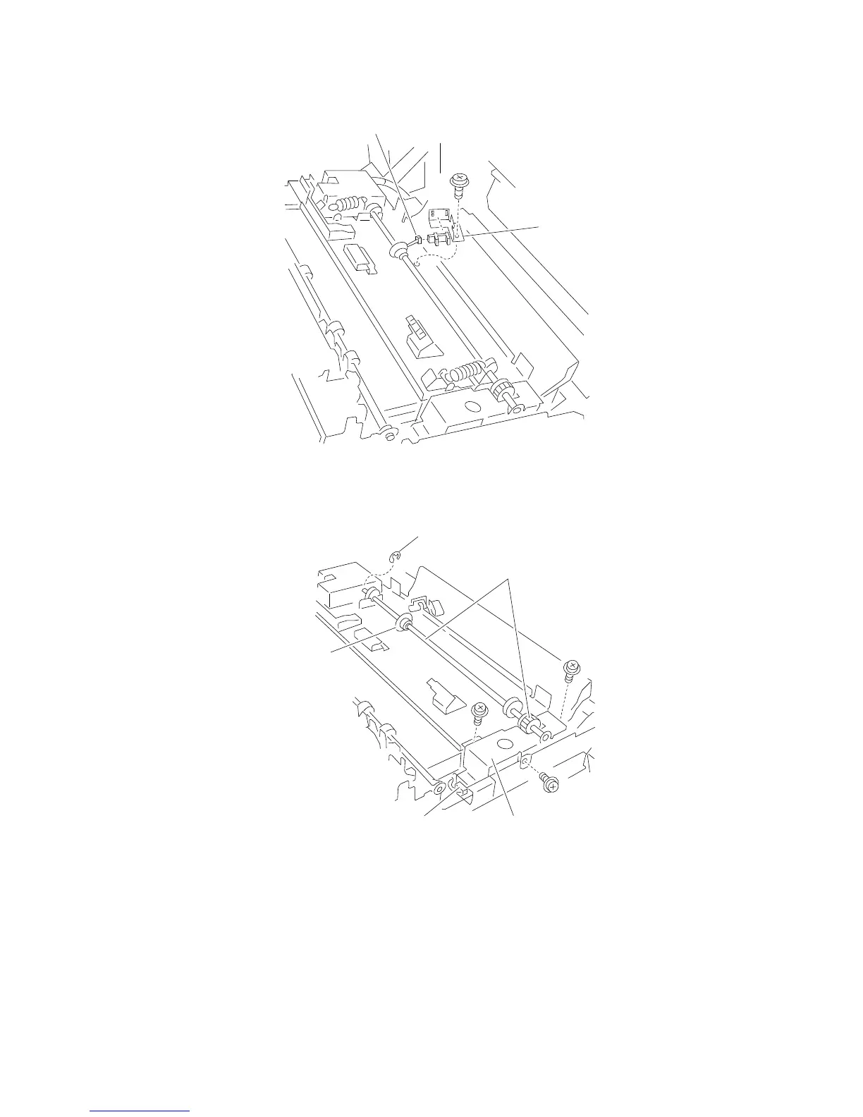 Replacement note: When reinstalling the transfer roll retract cam assembly (D), ensure that the bushing (E), pin