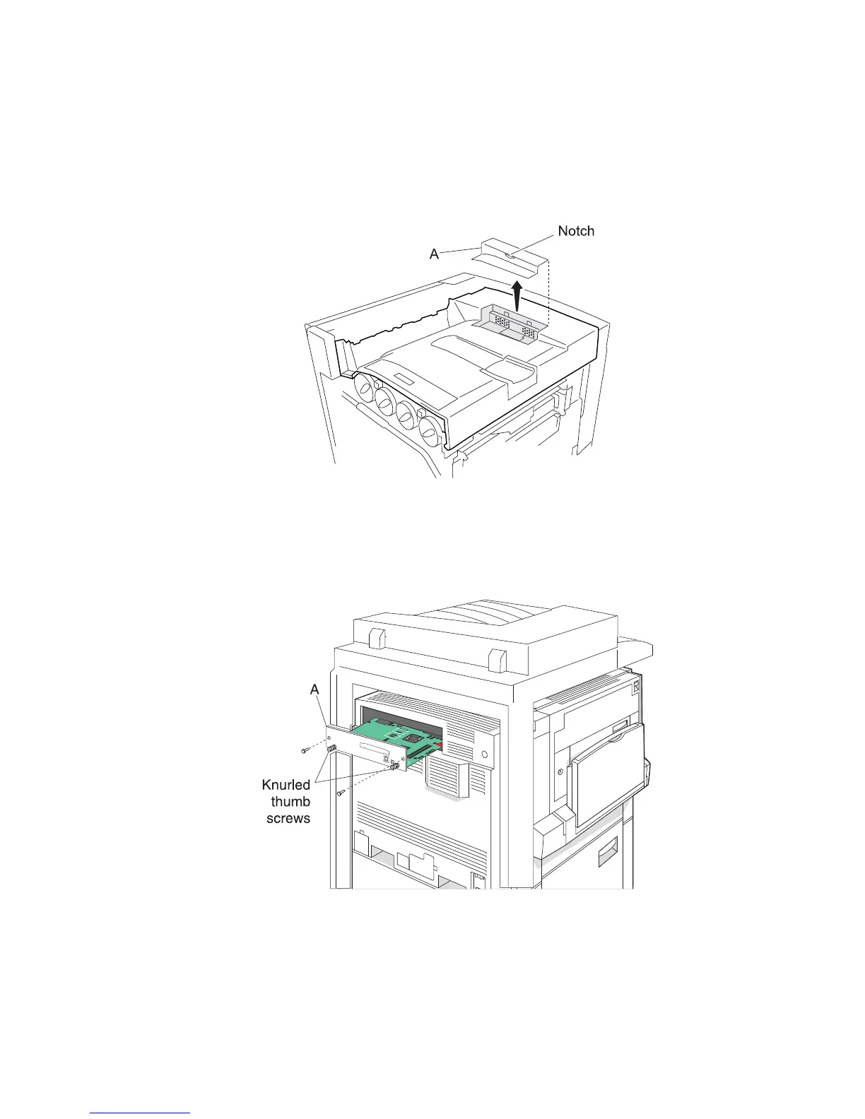 2. Pull the two knurled thumb screws to remove the RIP card assembly (A) from the machine.