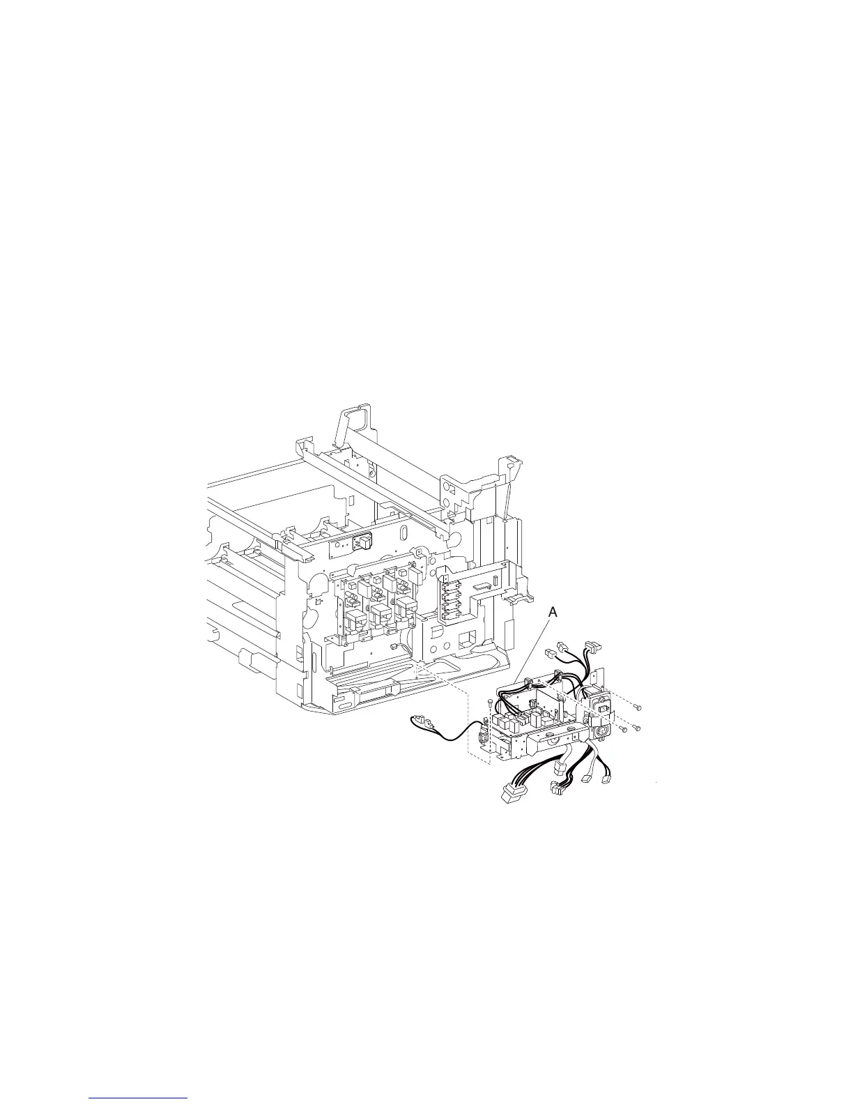 7. Remove four screws securing the AC drive card bracket assembly (A) to the machine.