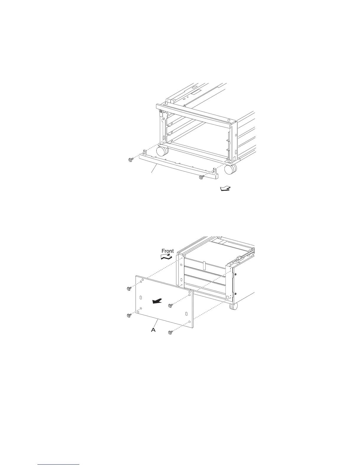 2. Remove the two screws securing the foot cover (A) to the machine.