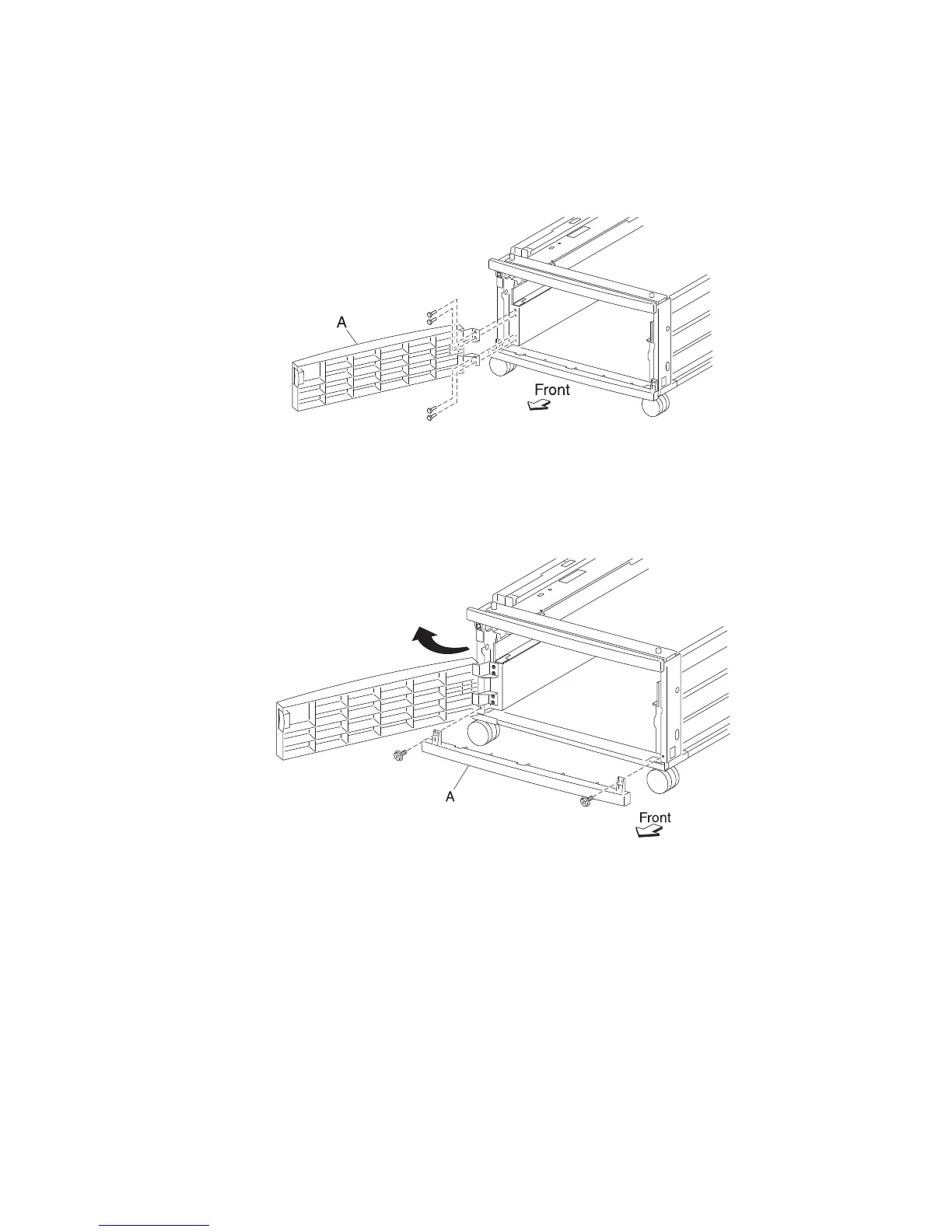 2. Remove the four screws securing the front door (A) to the machine.