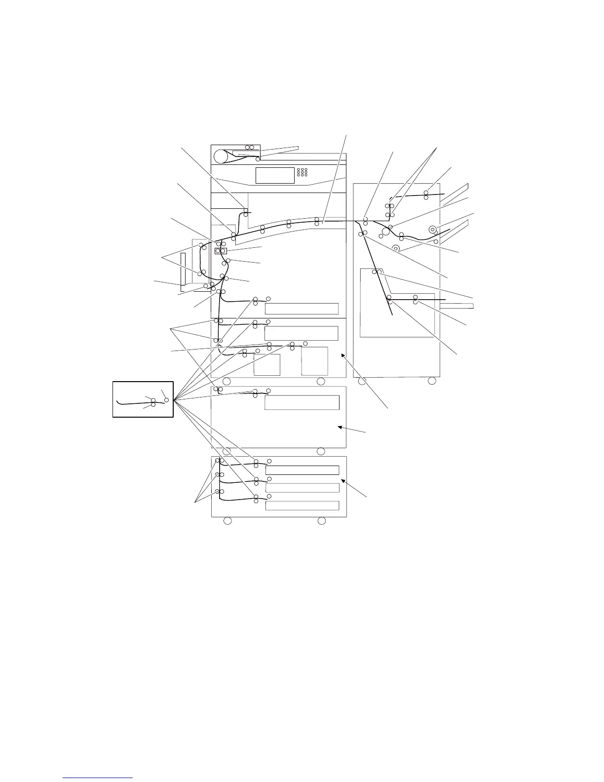 The following is a cross section of the printer and the tandem tray module, showing the main components