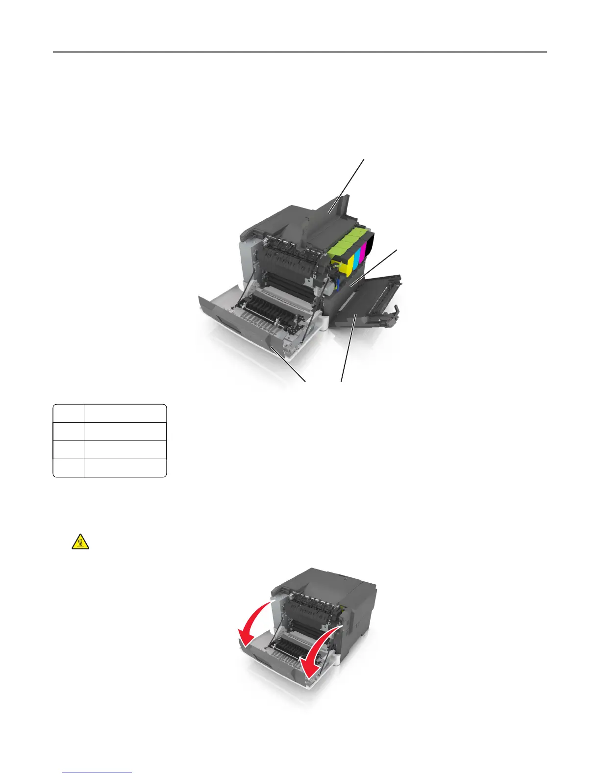 CAUTION—HOT SURFACE: The inside of the printer might be hot. To reduce the risk of injury from a hot