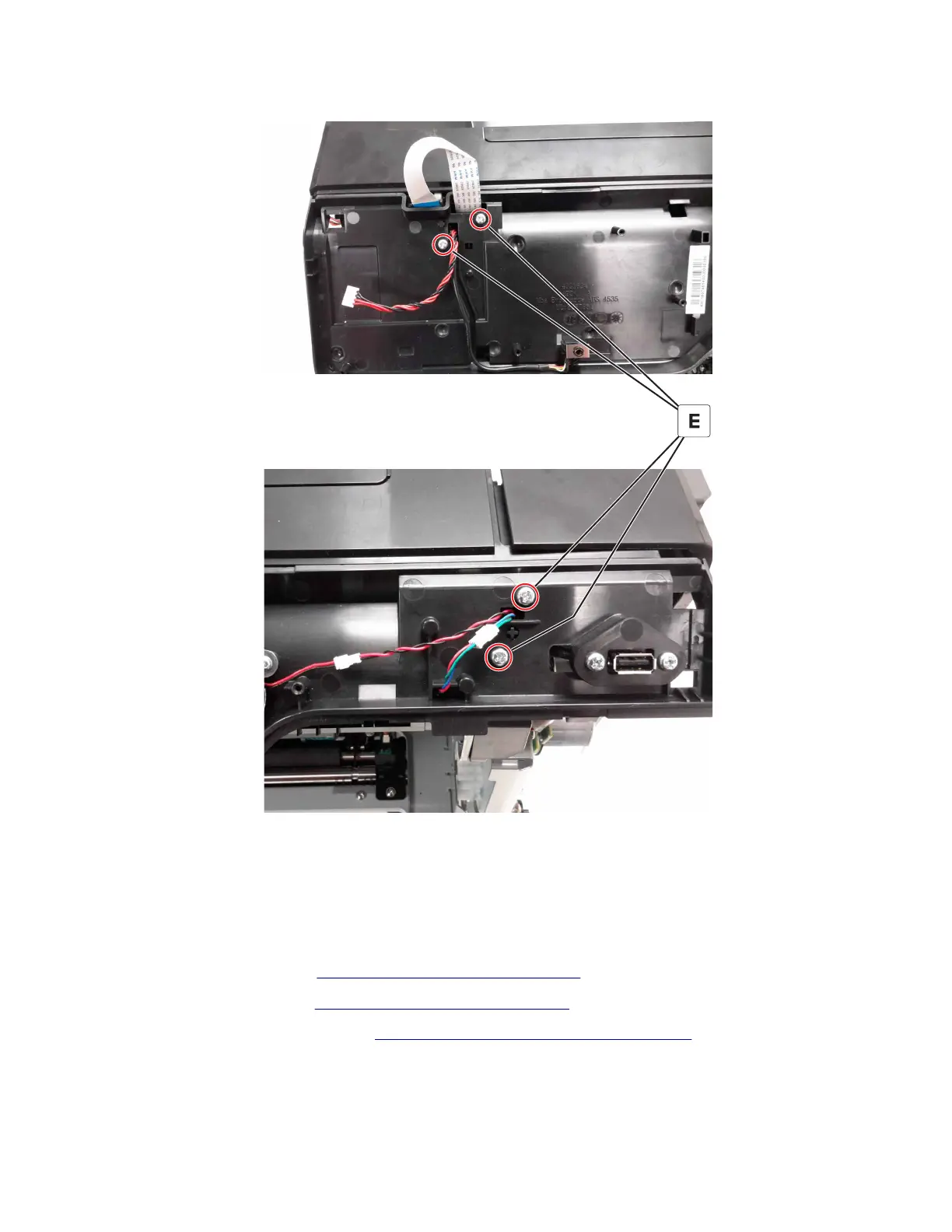 6 Remove the four screws (E), and then remove the cover.