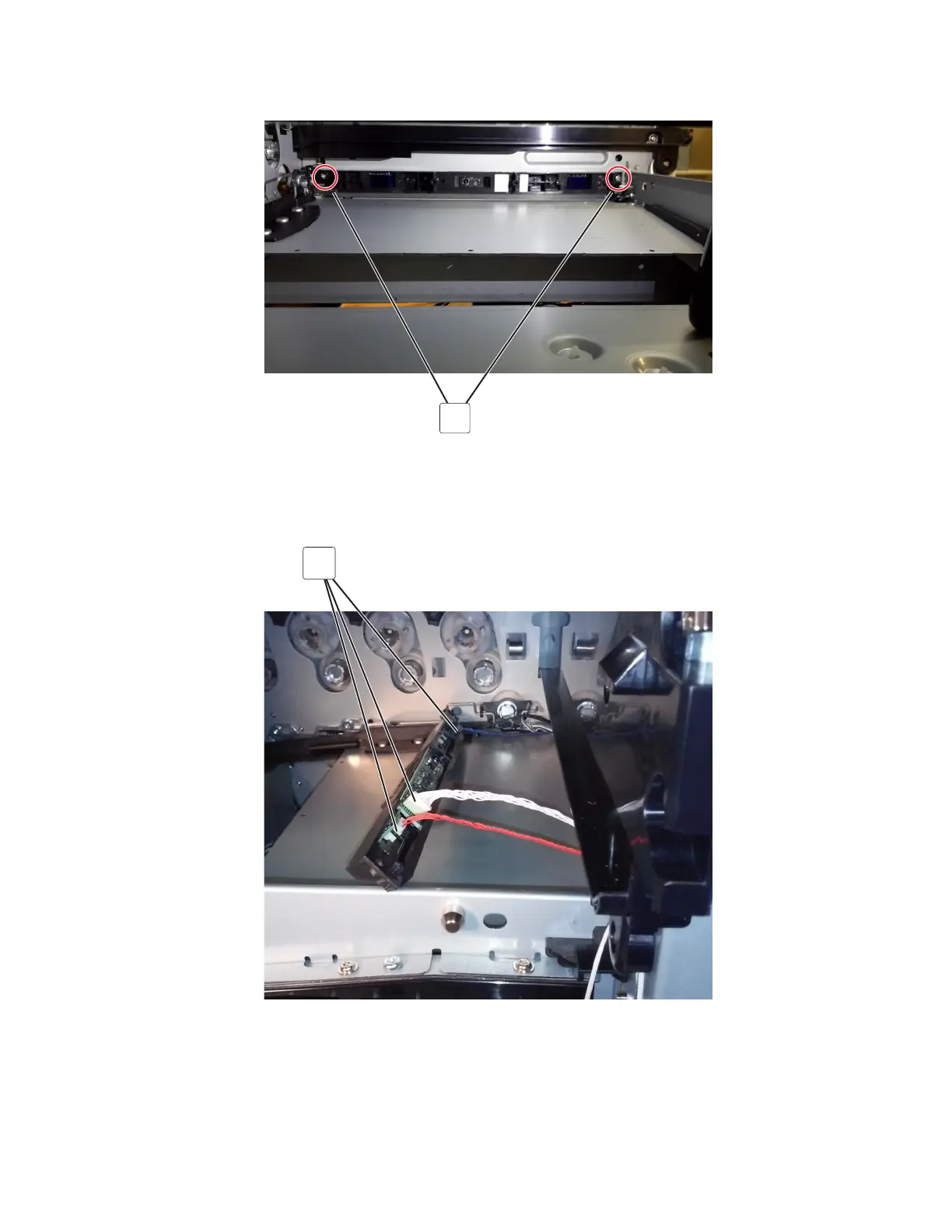 6 Carefully pull the sensor while guiding the black thermistor cable through the hole at the rear of the printer.