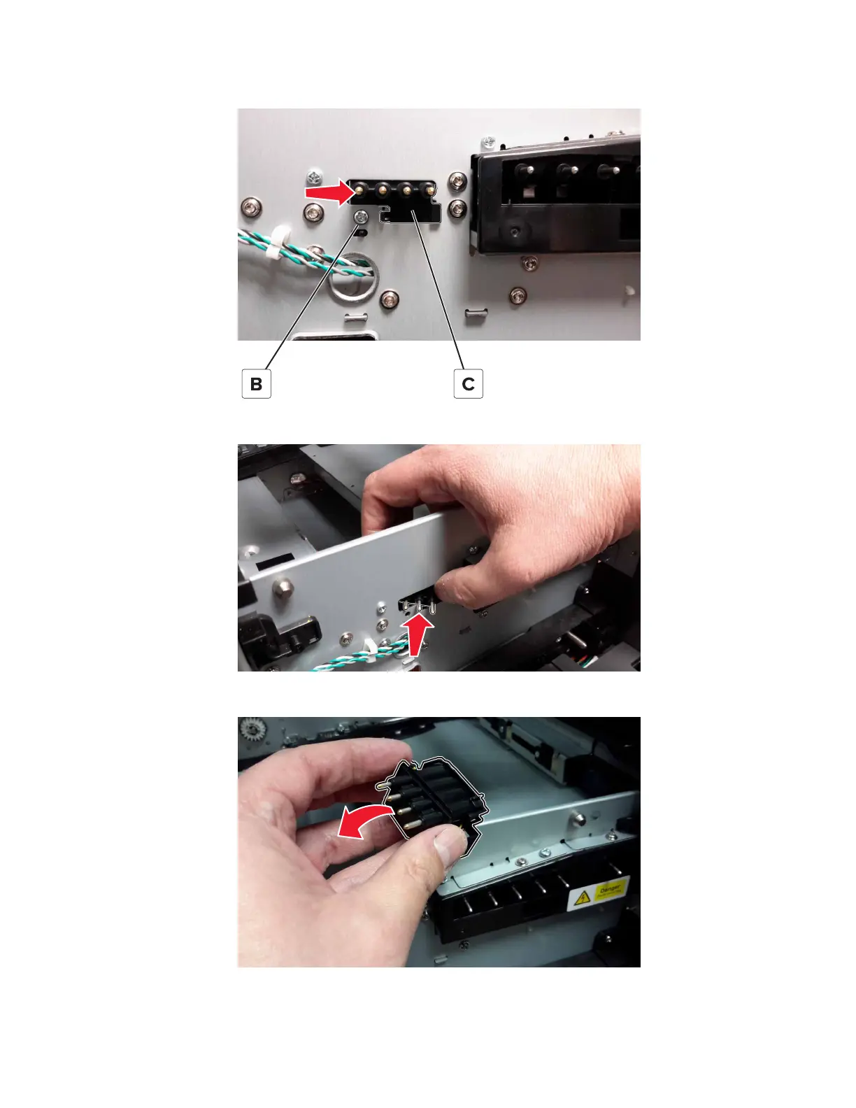 4 Remove the screw (B), and then push the tab (C) to the right.