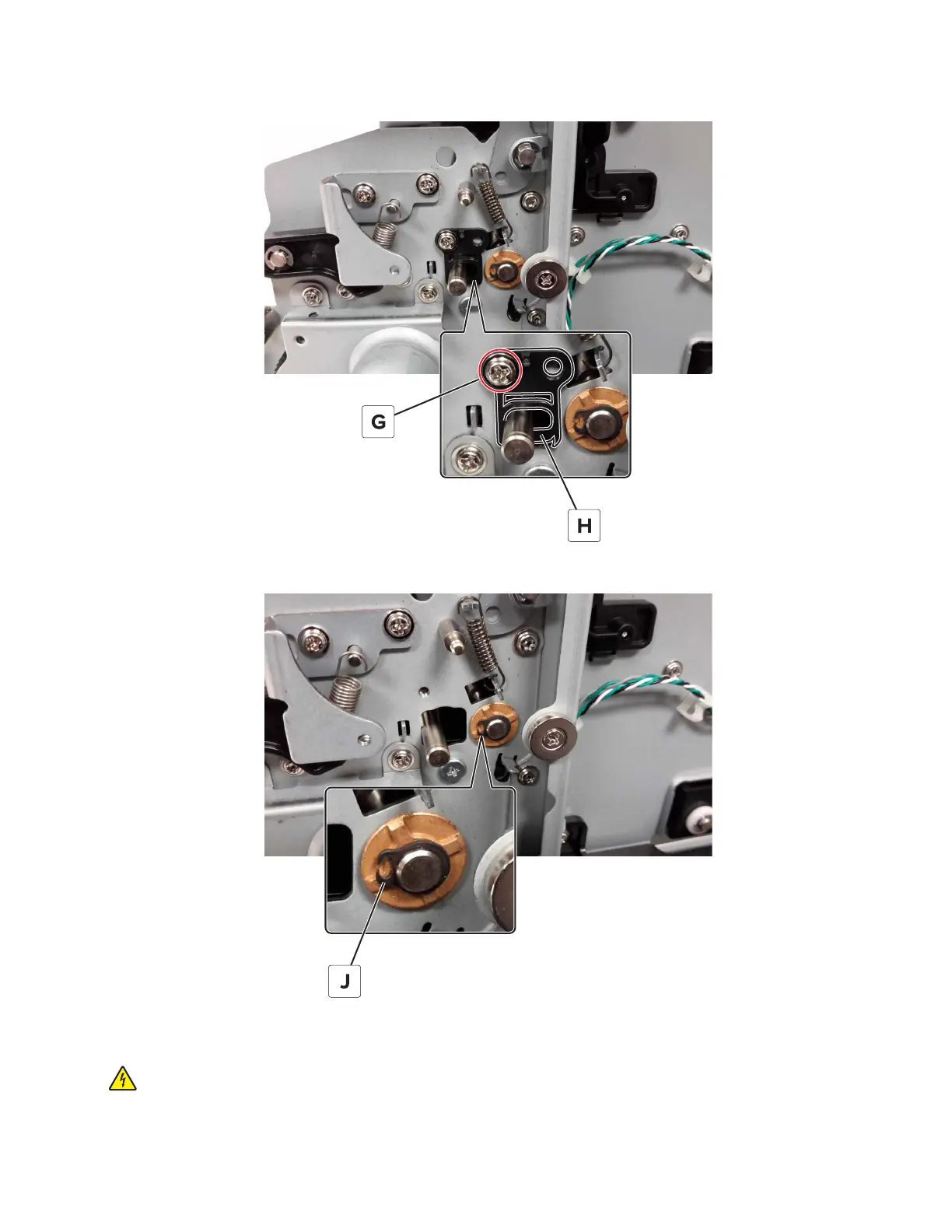 11 Remove the screw (G), and then remove the guide (H).