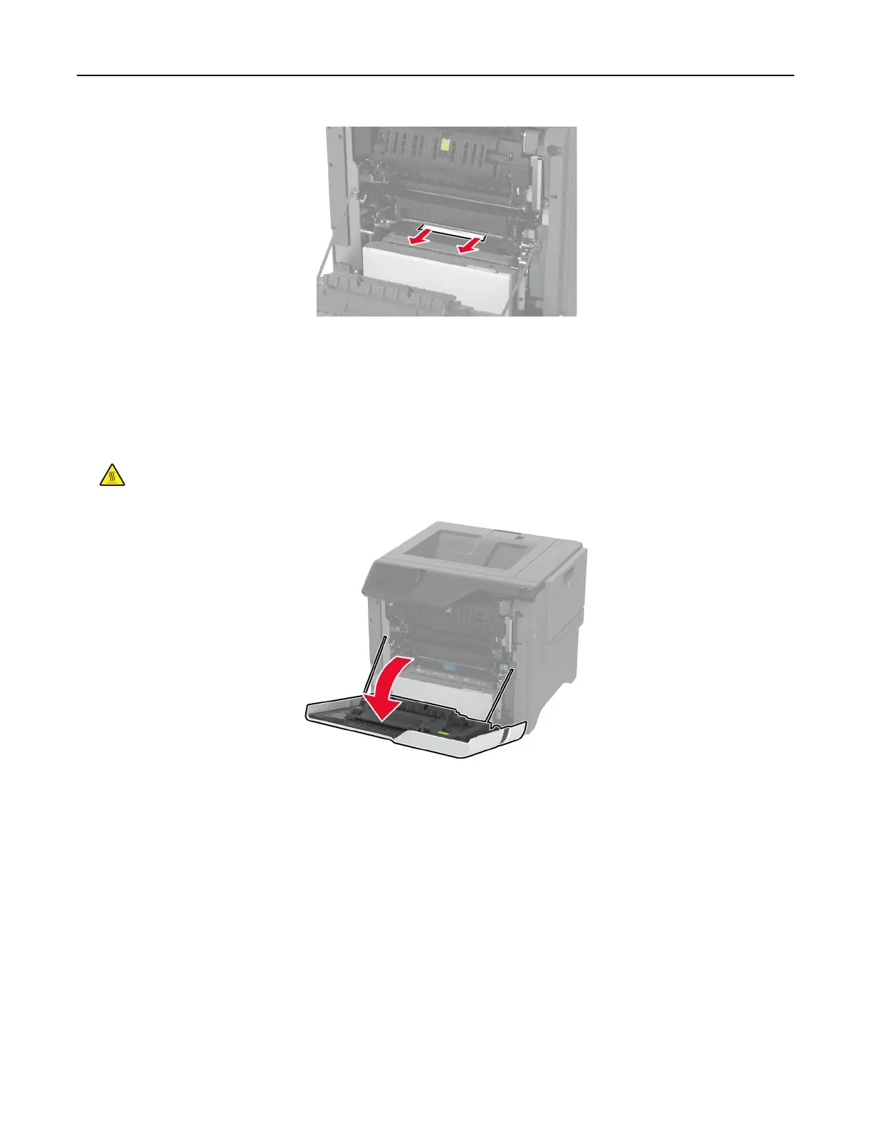 CAUTION—HOT SURFACE: The inside of the printer might be hot. To reduce the risk of injury from a