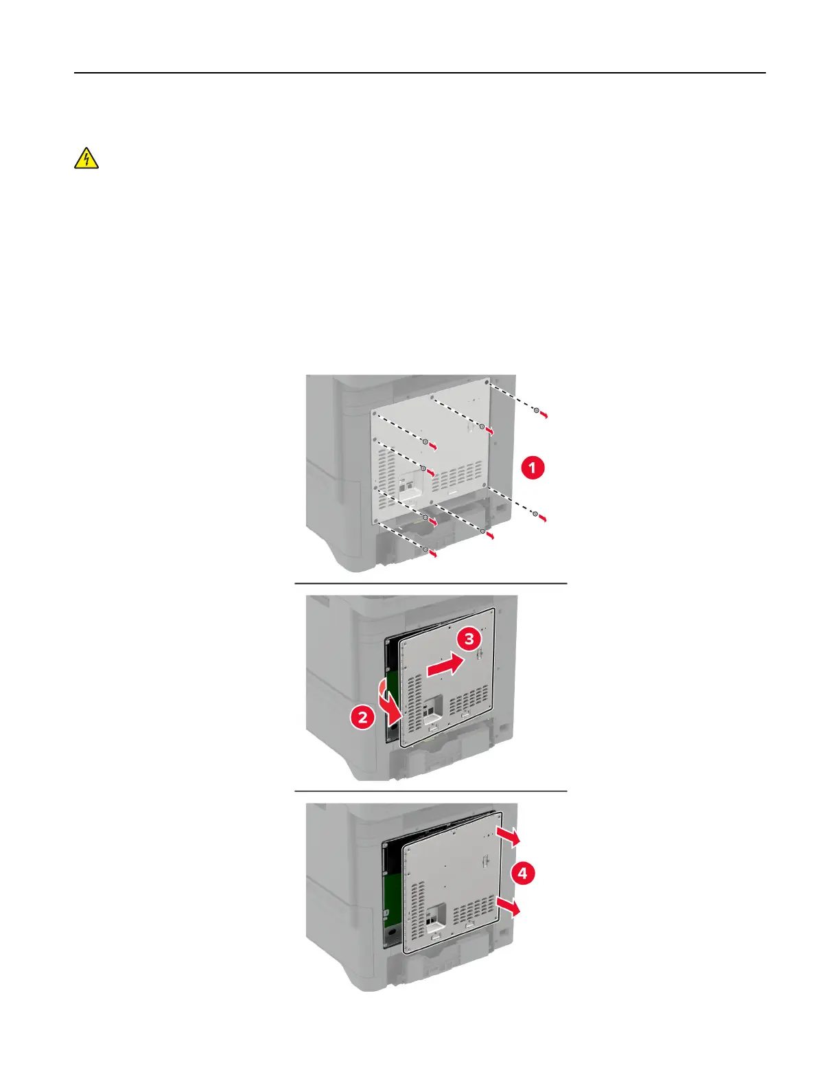 board or installing optional hardware or memory devices sometime after setting up the printer, then turn