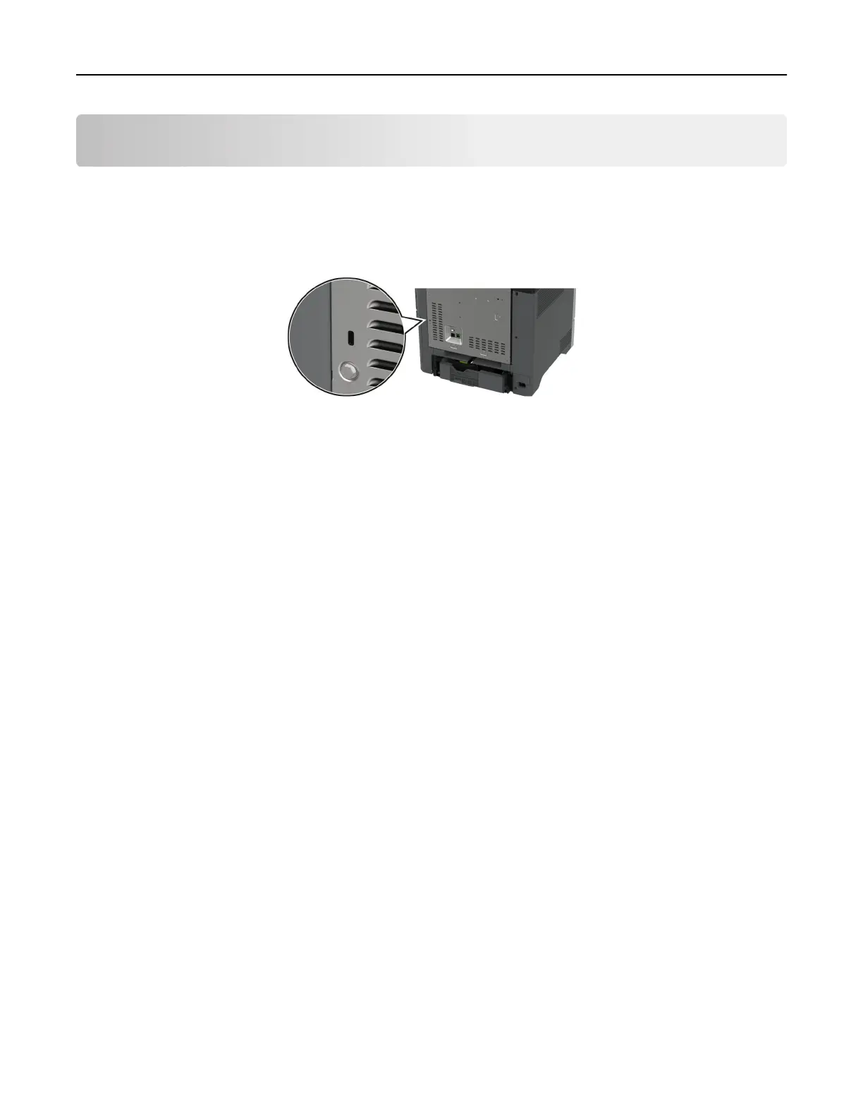 The printer is equipped with a security lock feature. Attach a security lock compatible with most laptop