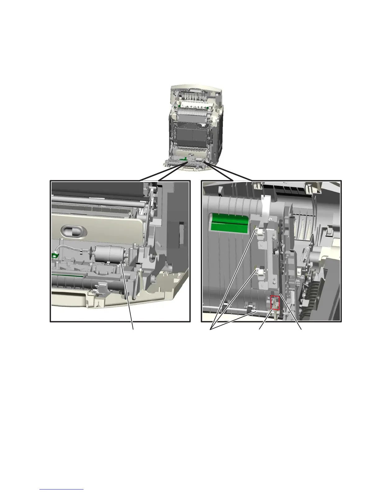 The duplex motor is mounted on the front door assembly. Drive is provided to three drive shafts in the duplex unit