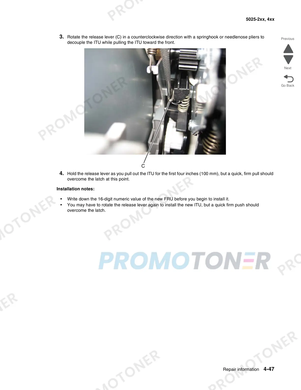 • You may have to rotate the release lever again to install the new ITU, but a quick firm push should