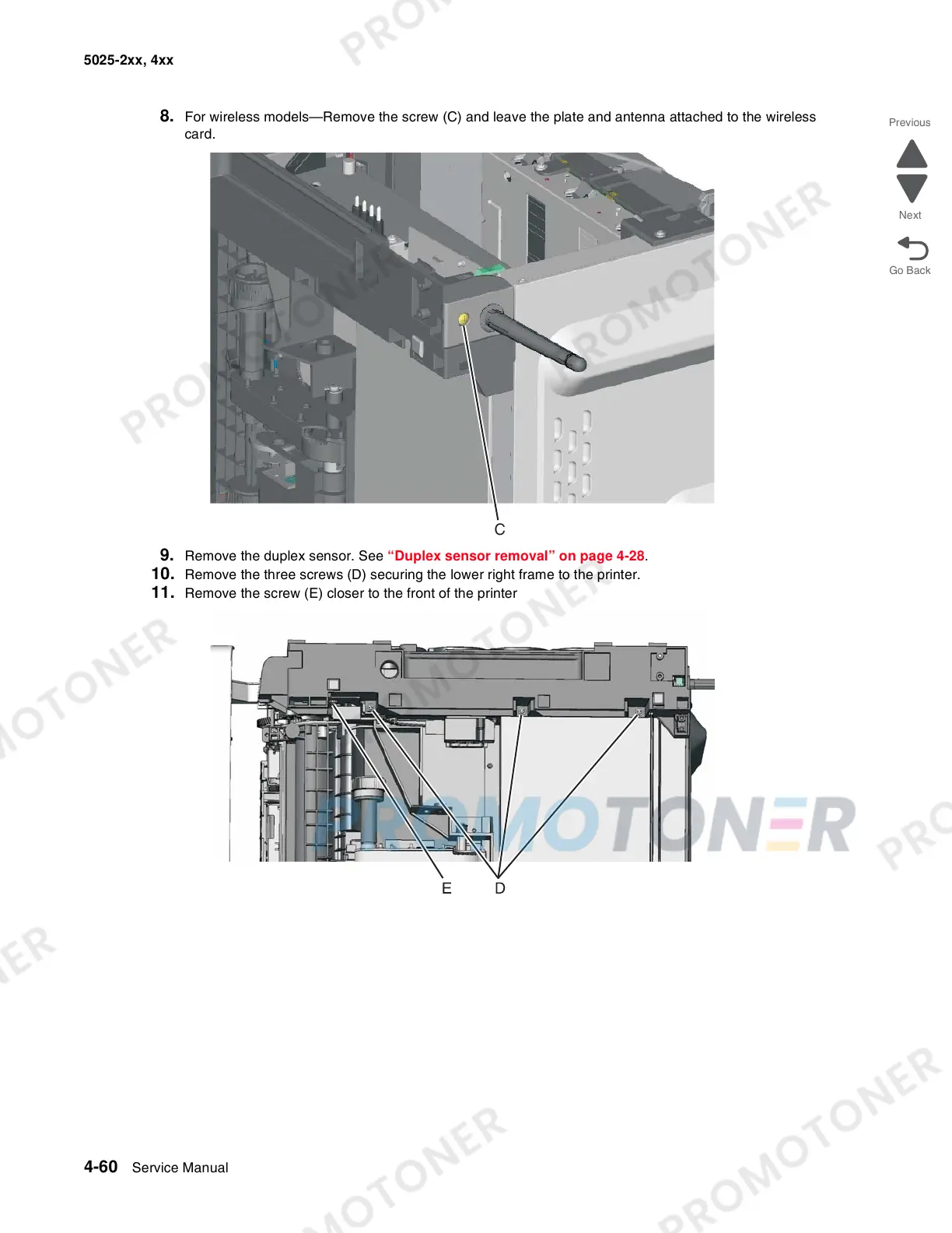9. Remove the duplex sensor. See “Duplex sensor removal on page 4-28.