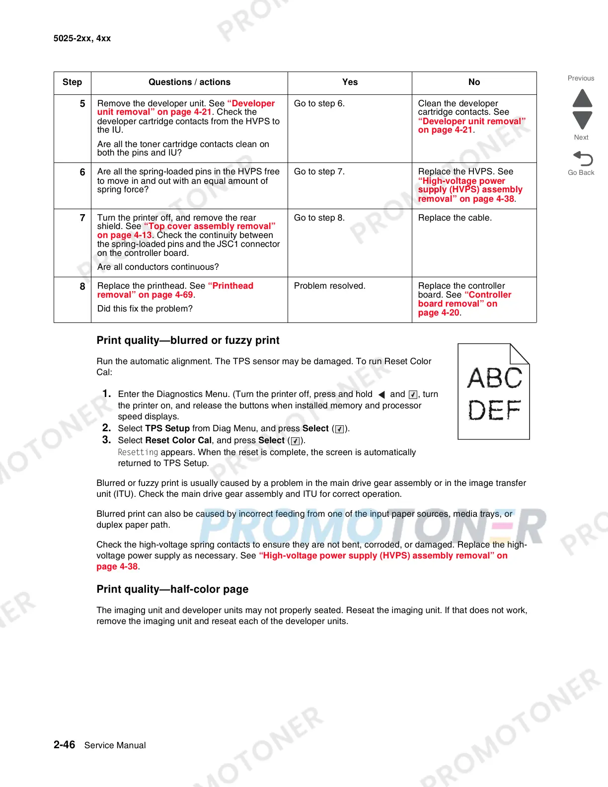 Blurred or fuzzy print is usually caused by a problem in the main drive gear assembly or in the image transfer